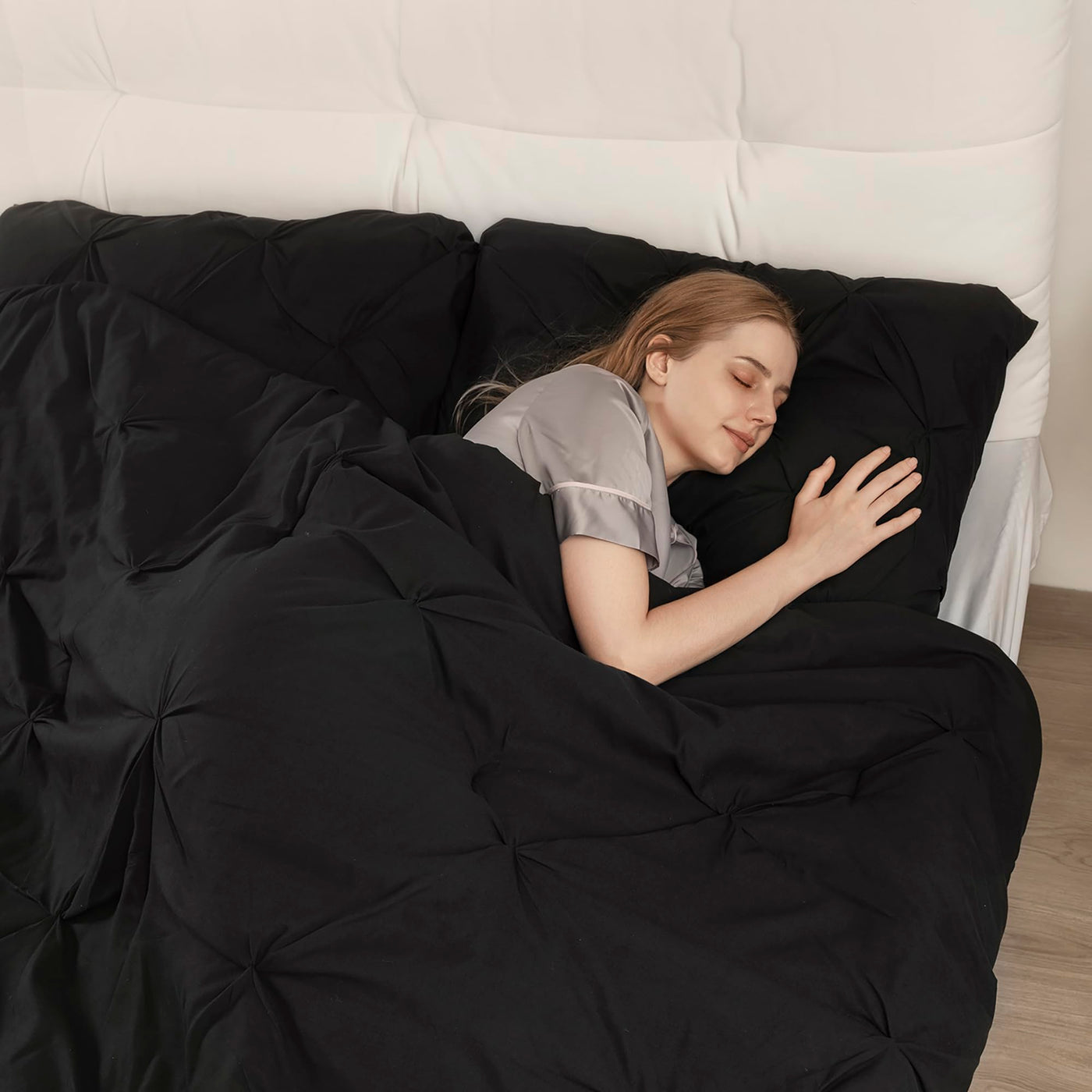 Downcool King Comforter Set - Black Comforter King Size, 3-Piece Pintuck Bedding Comforter Sets, 1 Pinch Pleated Comforter And 2