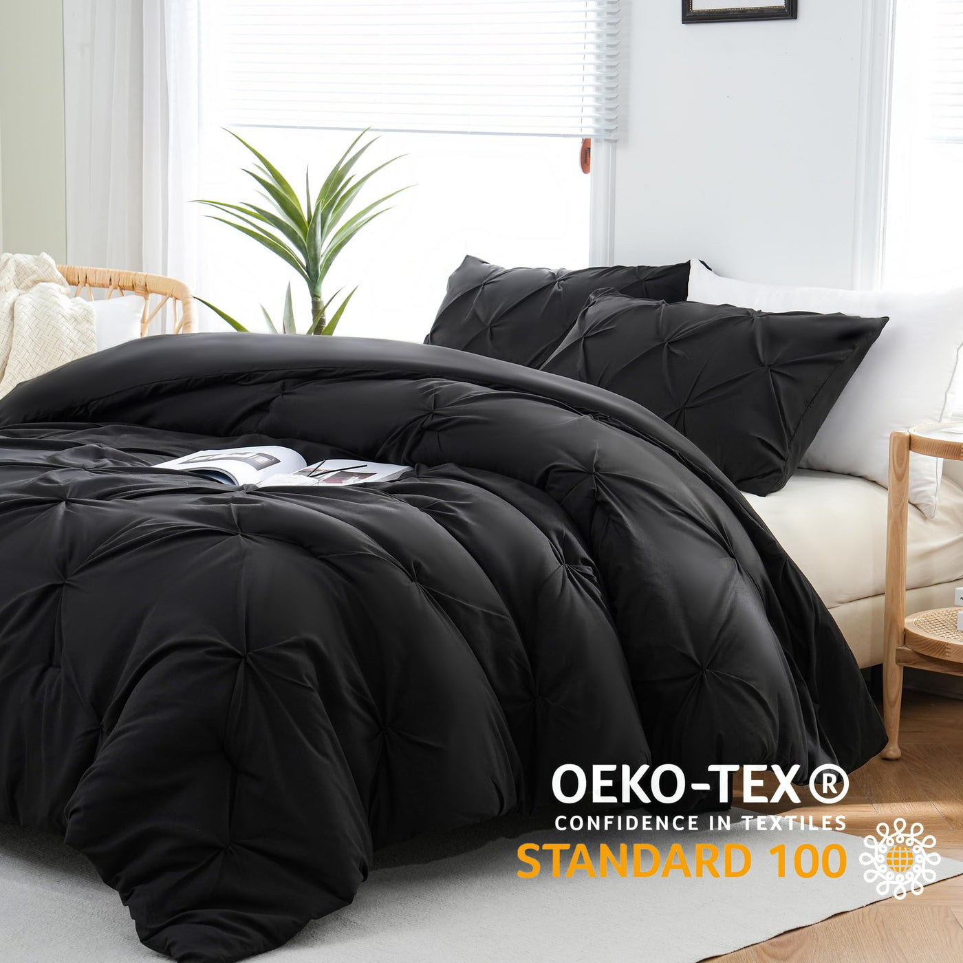 Downcool 3-Piece Pinch Pleated Comforter Setthe Black Comforters Queen Size Are Made Of Premium Microfiber Fabric, Which Feels Super Soft And Breathable. Filled With High-Quality Down Alternative Microfiber, The Queen Size Comforter Sets Provide The Right Warmth While Being Lightweight For All Seasons. If You Are Looking For A Warm And Soft Queen Size Bed Set, This Is The One For You!Classic Solid Colors With Exquisite Pinch Pleat Pattern Design, Simple But Beautiful, This Pintuck Comforter Set Can Fit Various Types Of Bedroom Decor And Add More Stylish To Your Sleeping Space. Hidden Neat Stitching Prevents The Filling From Shifting And Clumping After Washing.Features:Super Soft Microfiber Fabric240Gsm Down Alternative Fillingpinch Pleated Designsoft & Comfortablelightweightvacuum Packagedwrinkle Freefade-Resistant3-Piece Black Queen Comforter Set Includes:2 Pillowcases (20*26'')1 Pinch Pleated Comforter(88*92'')