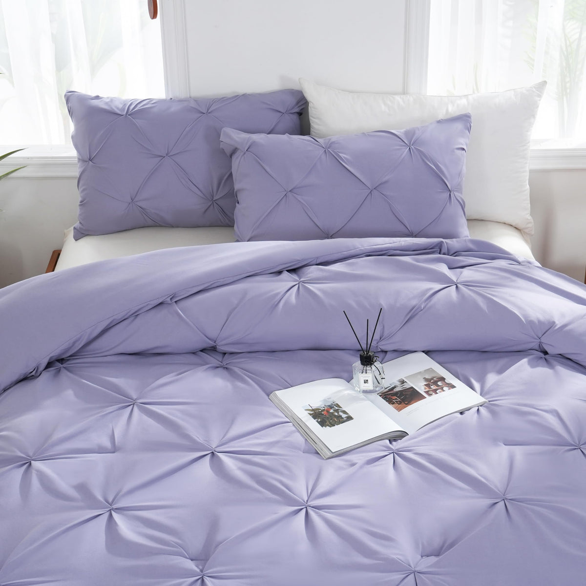 Downcool Queen Comforter Set Lavender Purple - 3 Pieces Cute Pinch Pleat Bed Set, Soft Fluffy Bedding Comforter Sets For All Sea