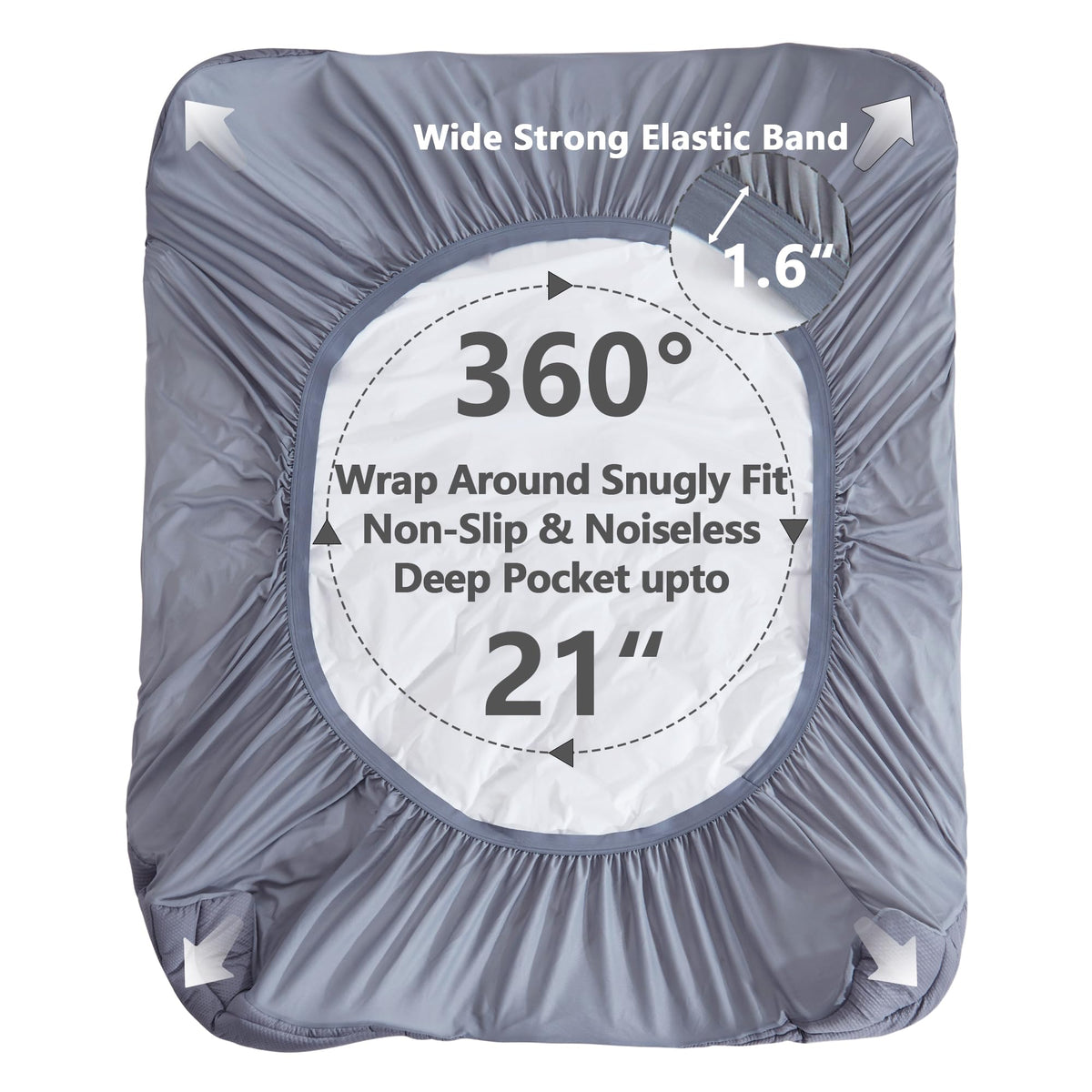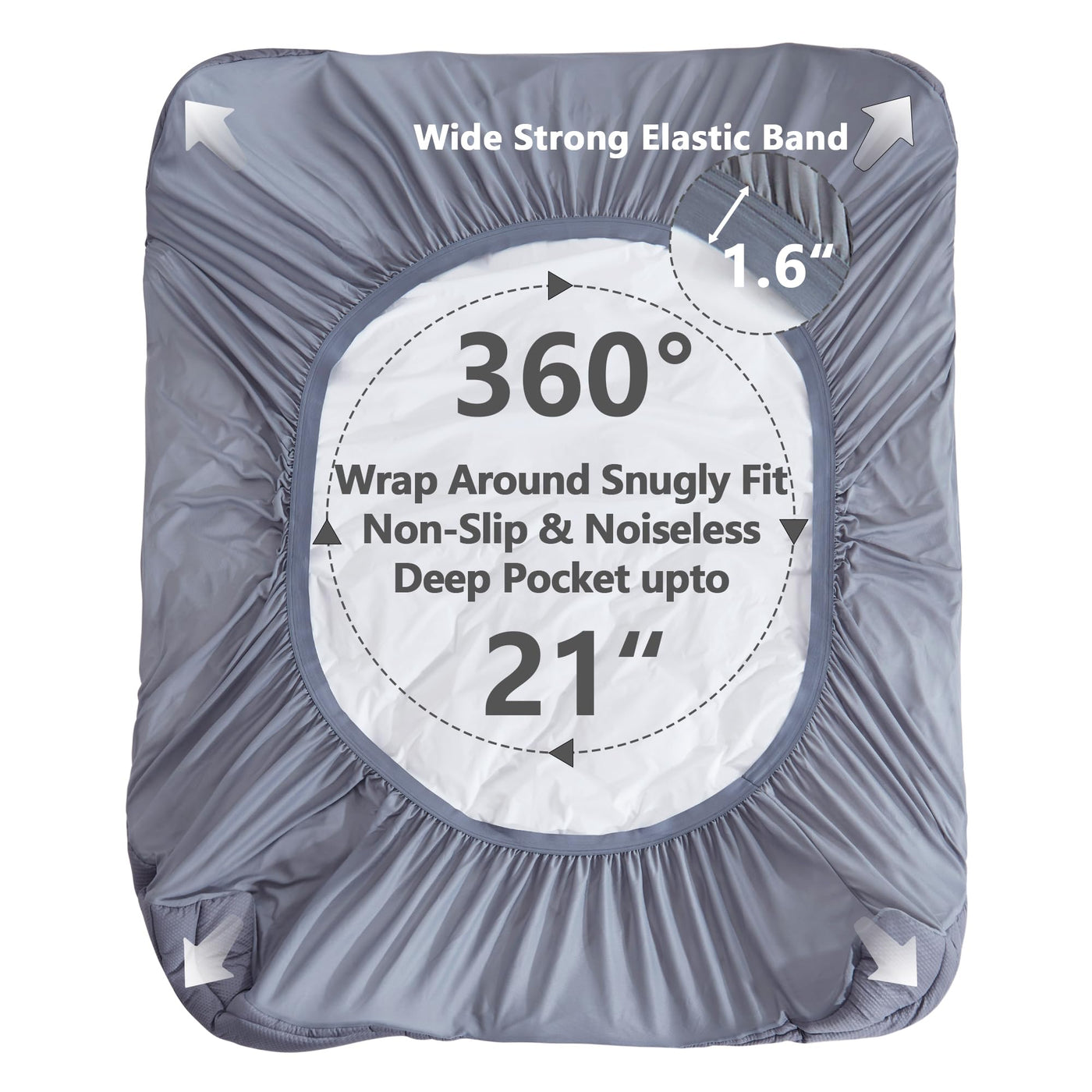 Elven Home 100% Waterproof Mattress Protector Premium Zoned Quilted Mattress Pad Cooling Plush Mattress Topper Breathable Padded Mattress Cover Down Alternative Fluffy Bed Topper Machine Washable Wrap Around Elastic Fitted Deep Pocket 8-21 Inch (Grey, King)