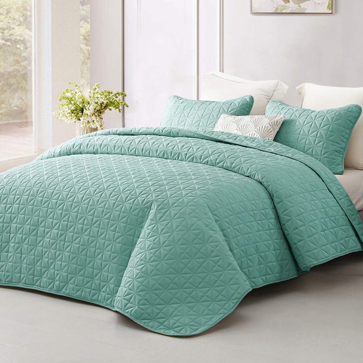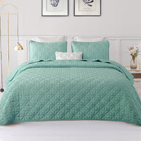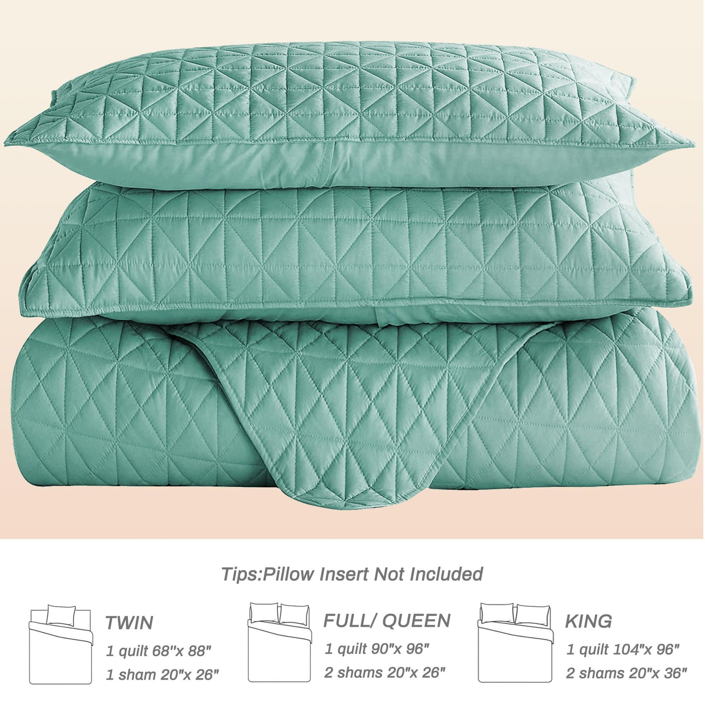 Exclusivo Mezcla Quilts King Size Bedding Set With Stitched Grid Pattern, Lightweight Summer Green Bedspreads Coverlets Bed Cove