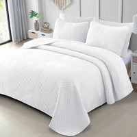 Exclusivo Mezcla Ultrasonic Twin Quilt Bedding Set, Lightweight White Bedspreads Soft Modern Geometric Coverlet Set For All Seas