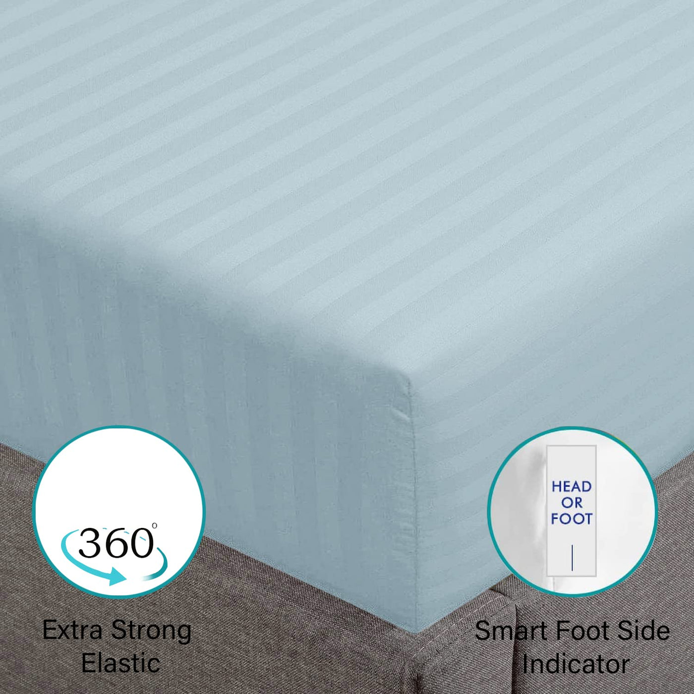 Feather & Stitch 100% Cotton 1 Piece Damask Stripe California King Fitted Sheet 500 Thread Count Aqua 18 Inch Extra Deep Pocket Luxury Sateen Weave Stretchable Boxer Elastic Fits Mattress Perfectly