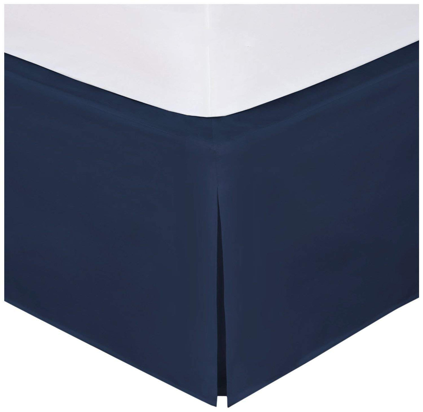 Full Size Luxury Tailored Bed Skirt 14'' Drop Pleated Styling Dust Ruffled Solid Navy Blue New
