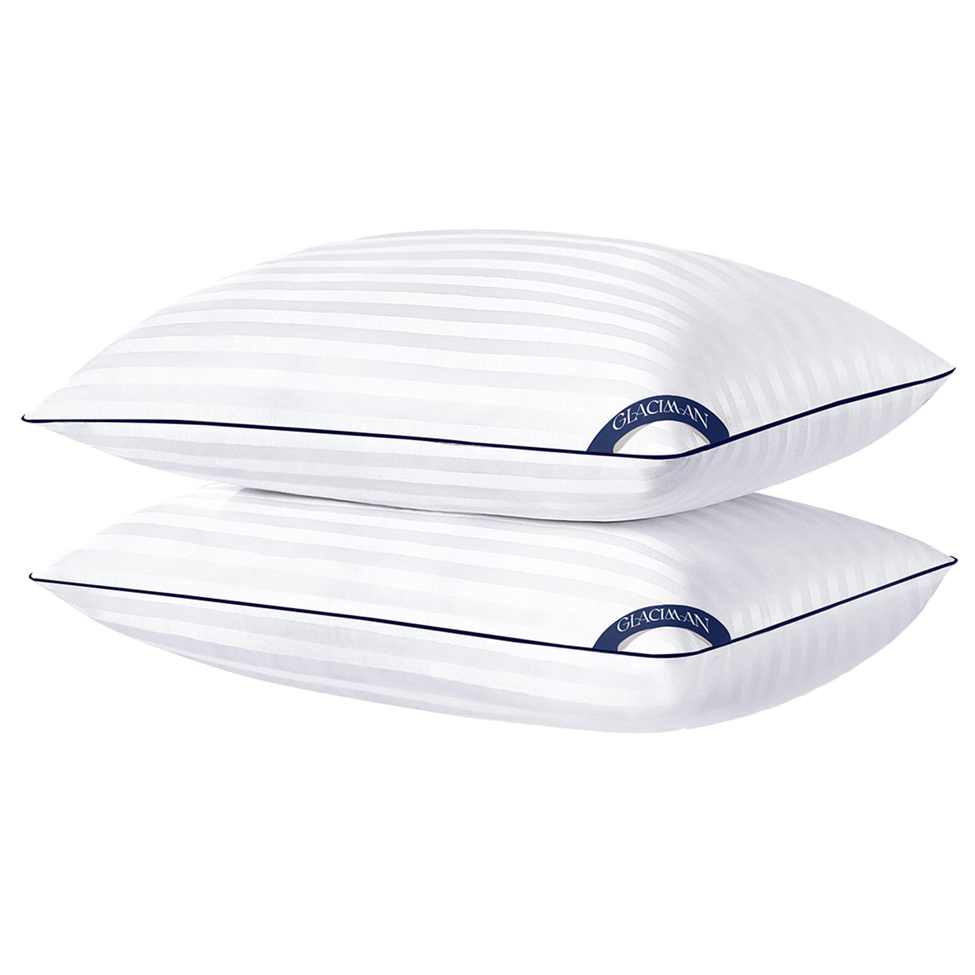 Q: What size are the Glaciman Hotel Bed Pillows?A: The Glaciman Hotel Bed Pillows come in a king size, measuring 20X36 inches, and are available in a convenient set of 2.