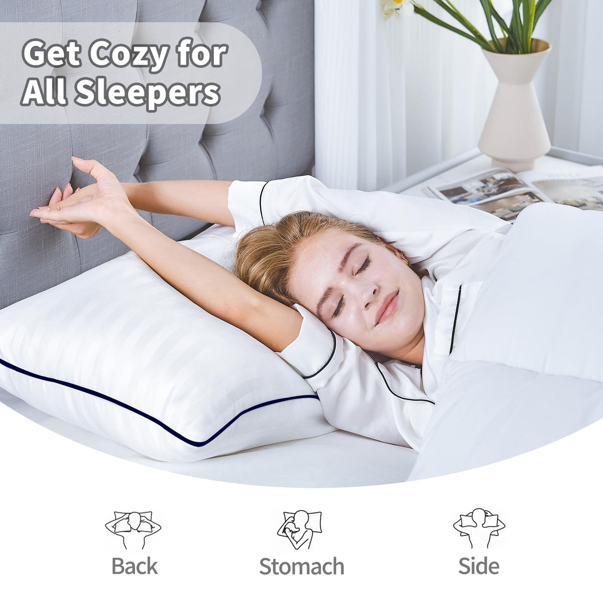 Glaciman Bed Pillows For Sleeping King Size Set Of 2, Hotel Quality Pillows 2 Pack For Side And Back Sleepers, Breathable Cover And Soft Down Alternative Filling, Navy Blue Piping