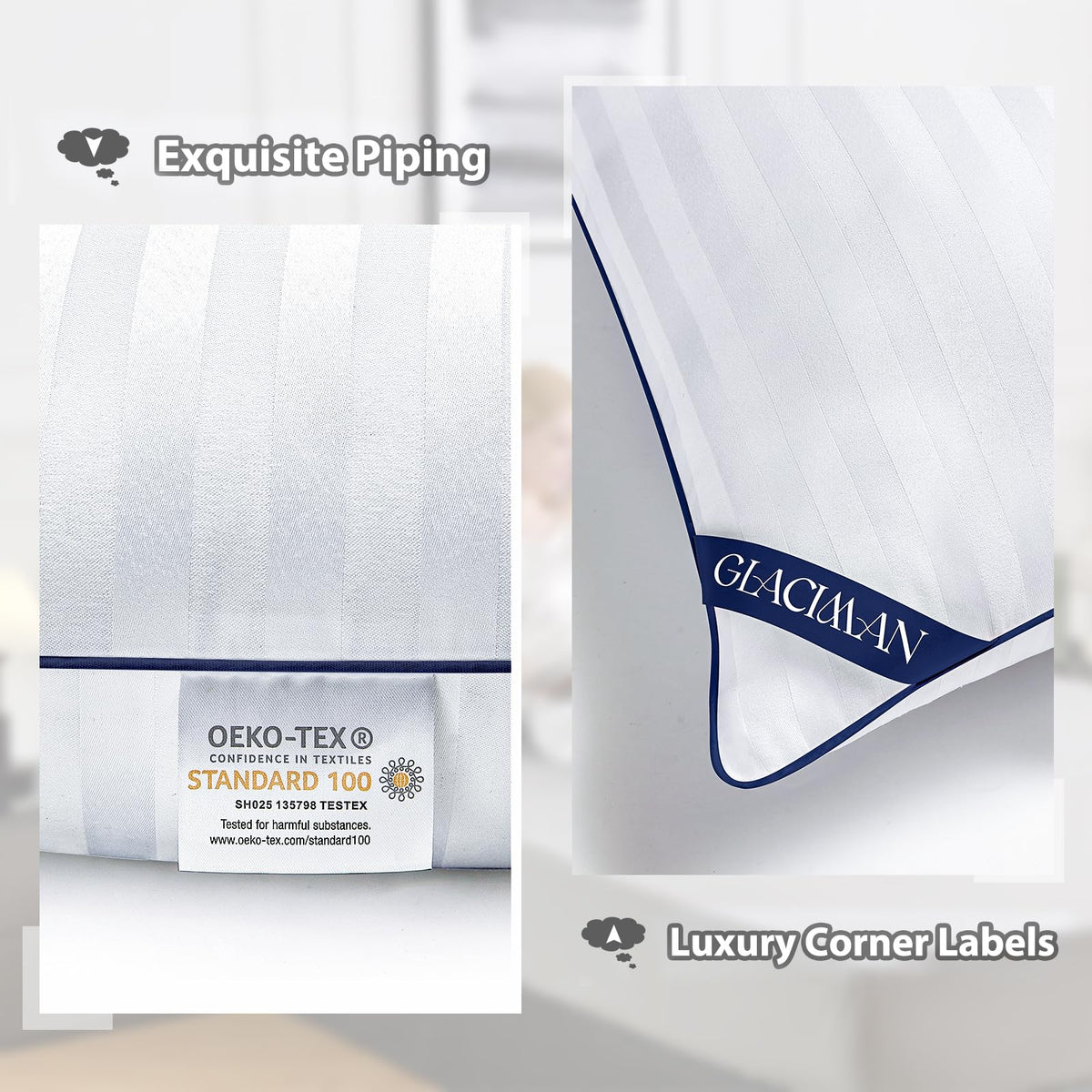 Q: Are the Glaciman pillows safe for allergy sufferers?A: Yes, the Glaciman Hotel Bed Pillows are OEKO-TEX STANDARD 100 certified, ensuring they are safe, environmentally friendly, and free from irritating odors, making them an excellent choice for allergy sufferers.