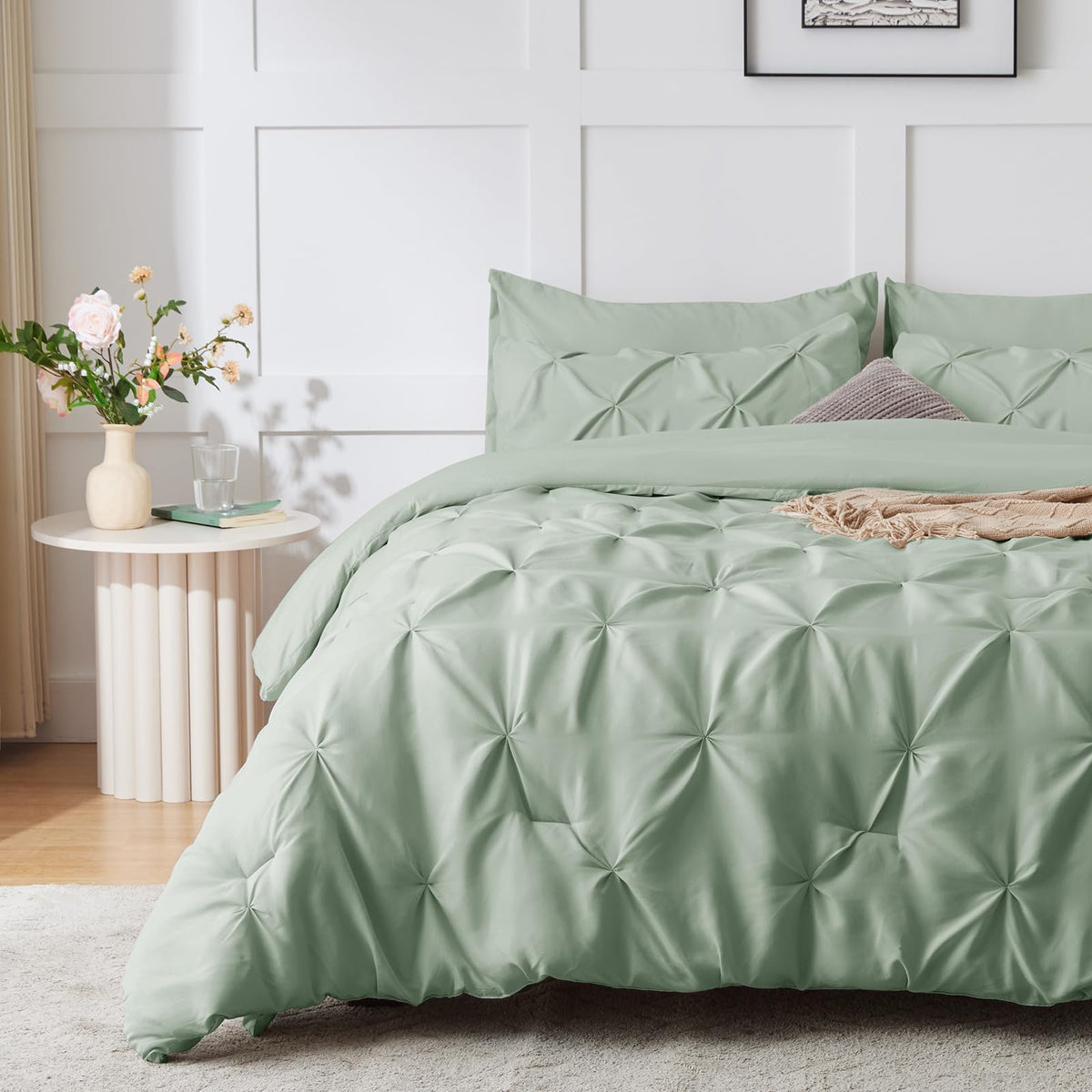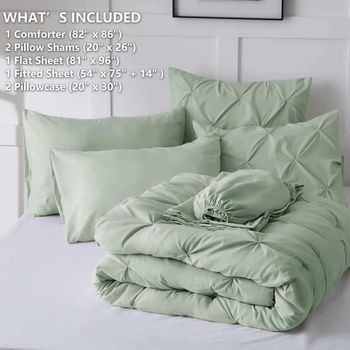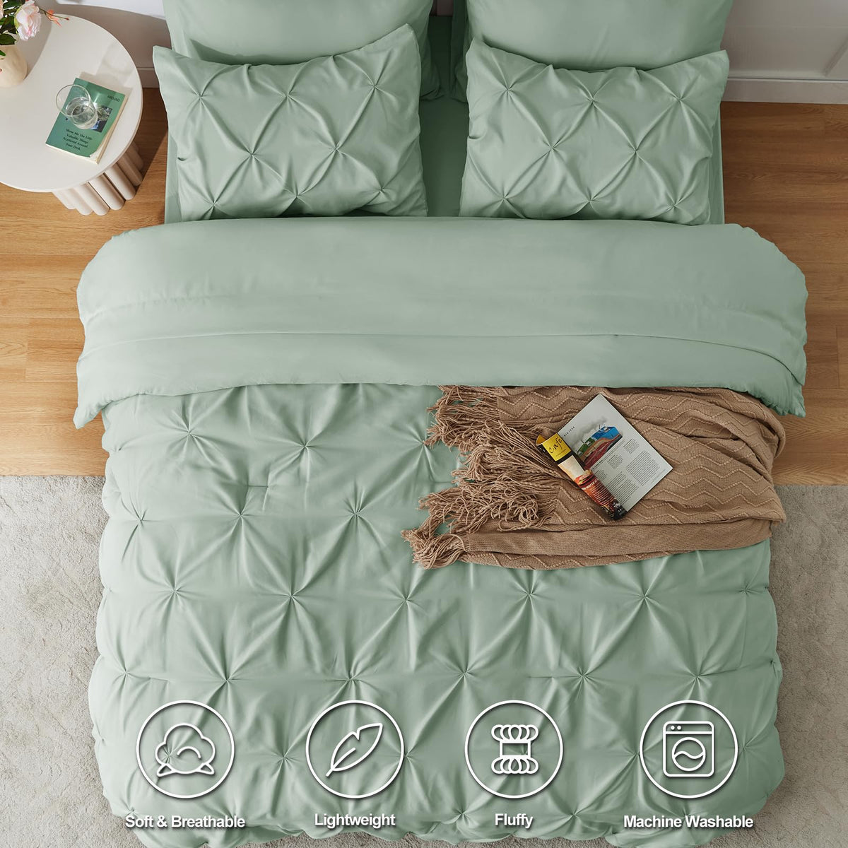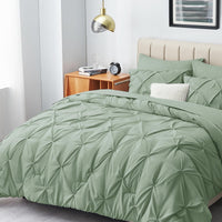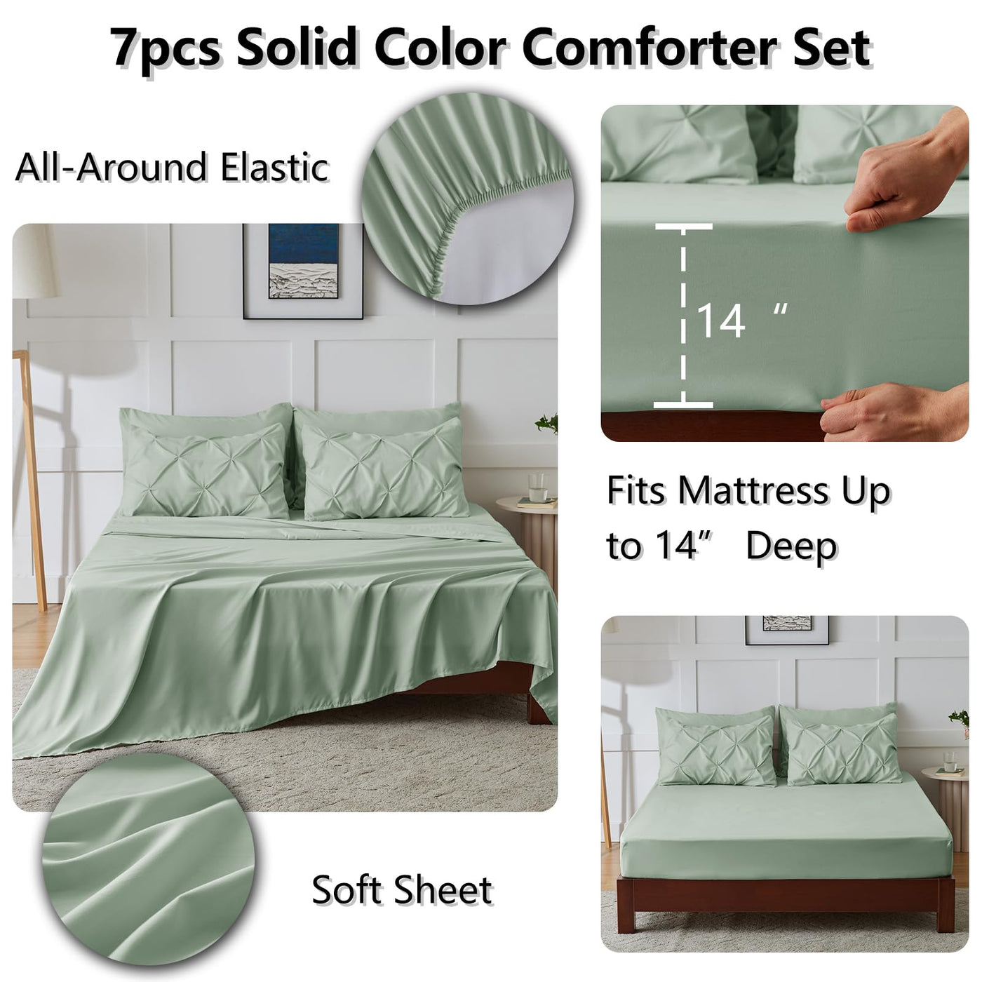 Himeet Bedding Sets Full 7 Pieces Comforter Set Full Pintuck Bed In A Bag Full Bedding Set Pinch Pleat Design Sage Green