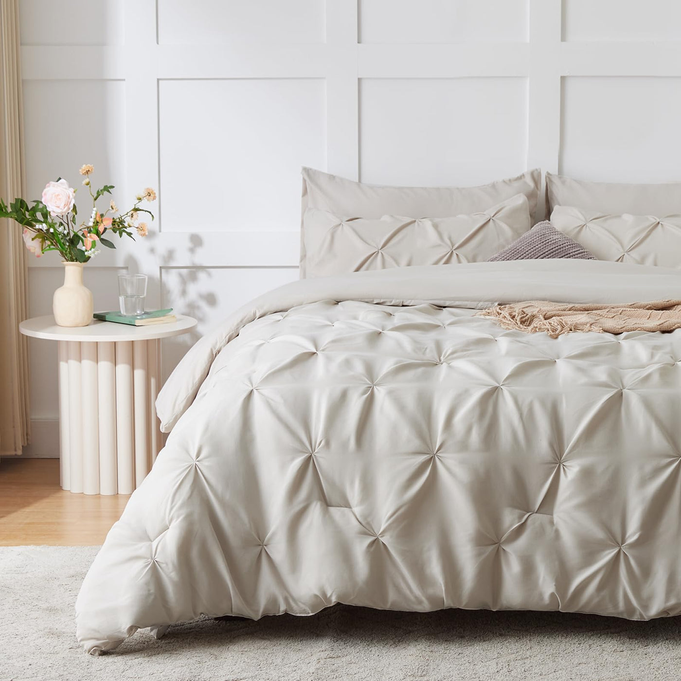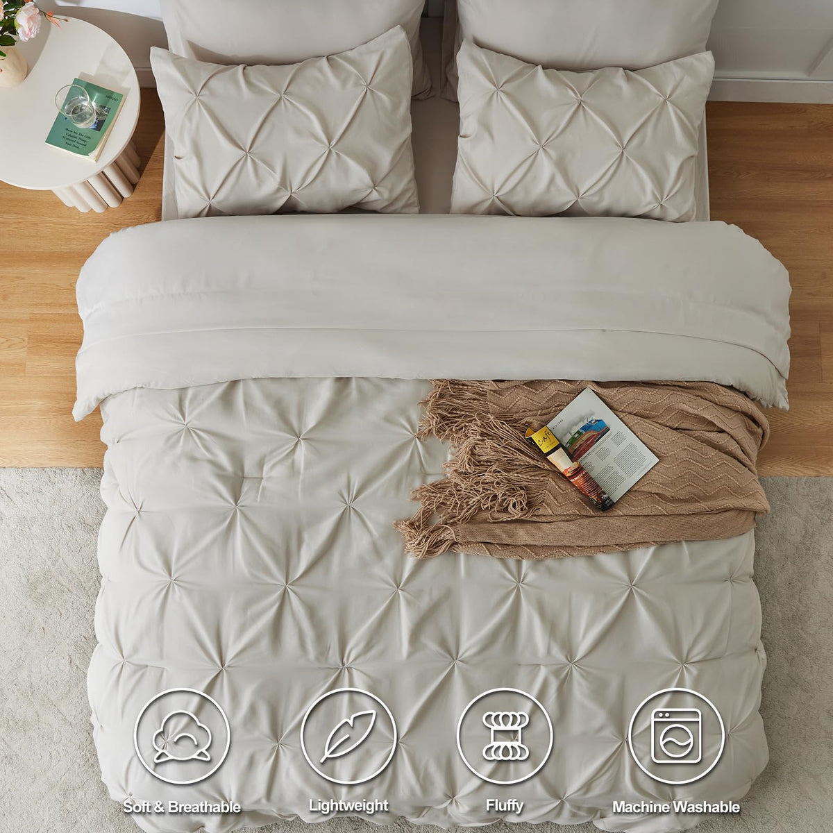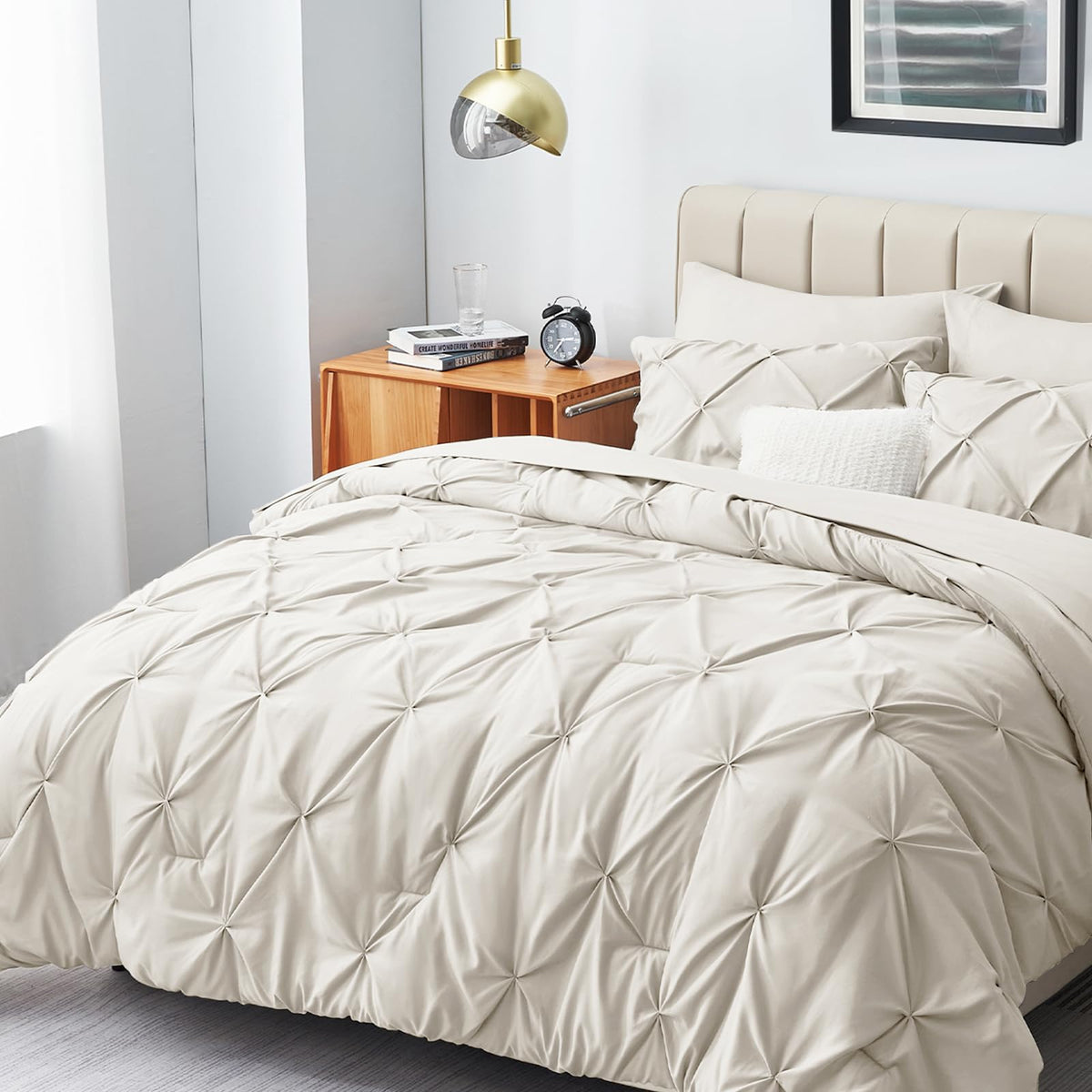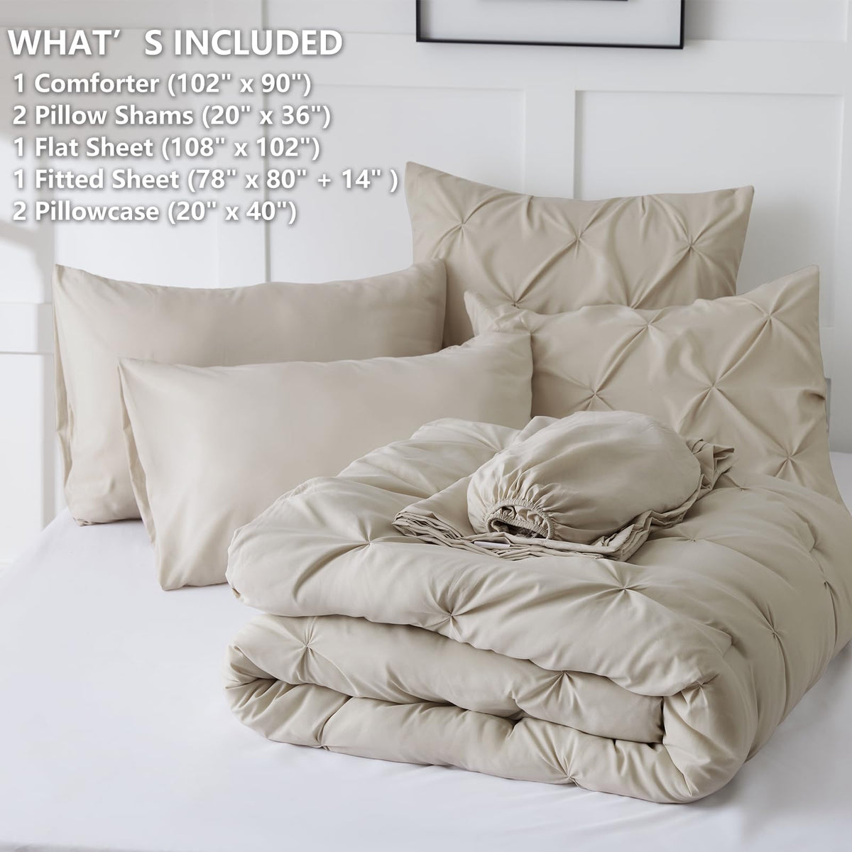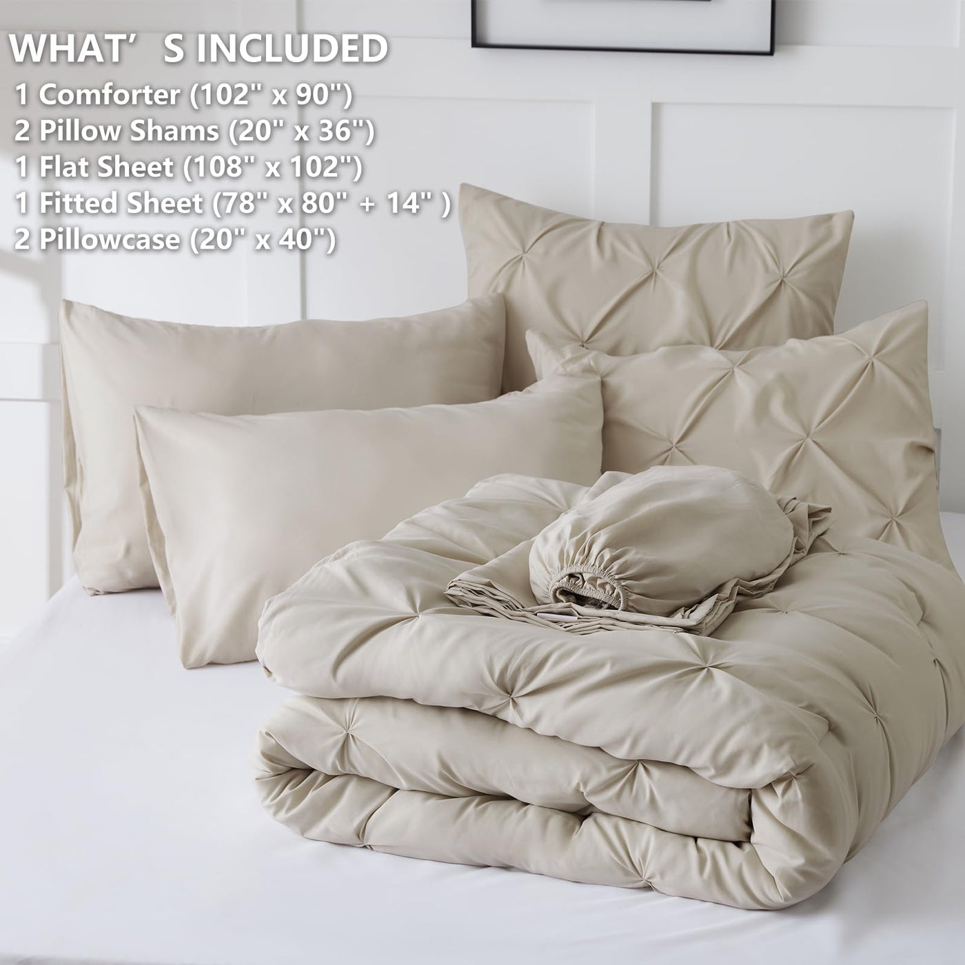 Himeet King Size Bedding Sets 7 Pieces King Bedding Set Pintuck King Size Comforter Set Pinch Pleat Beige