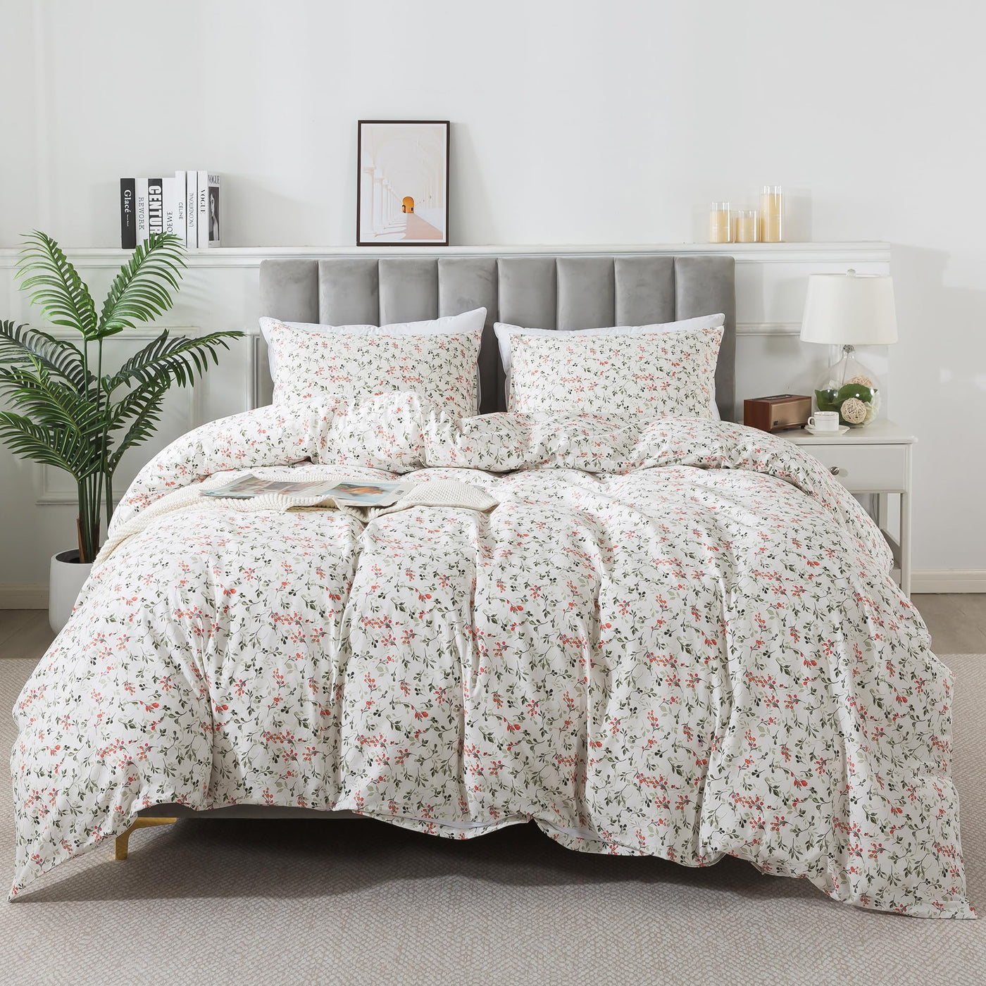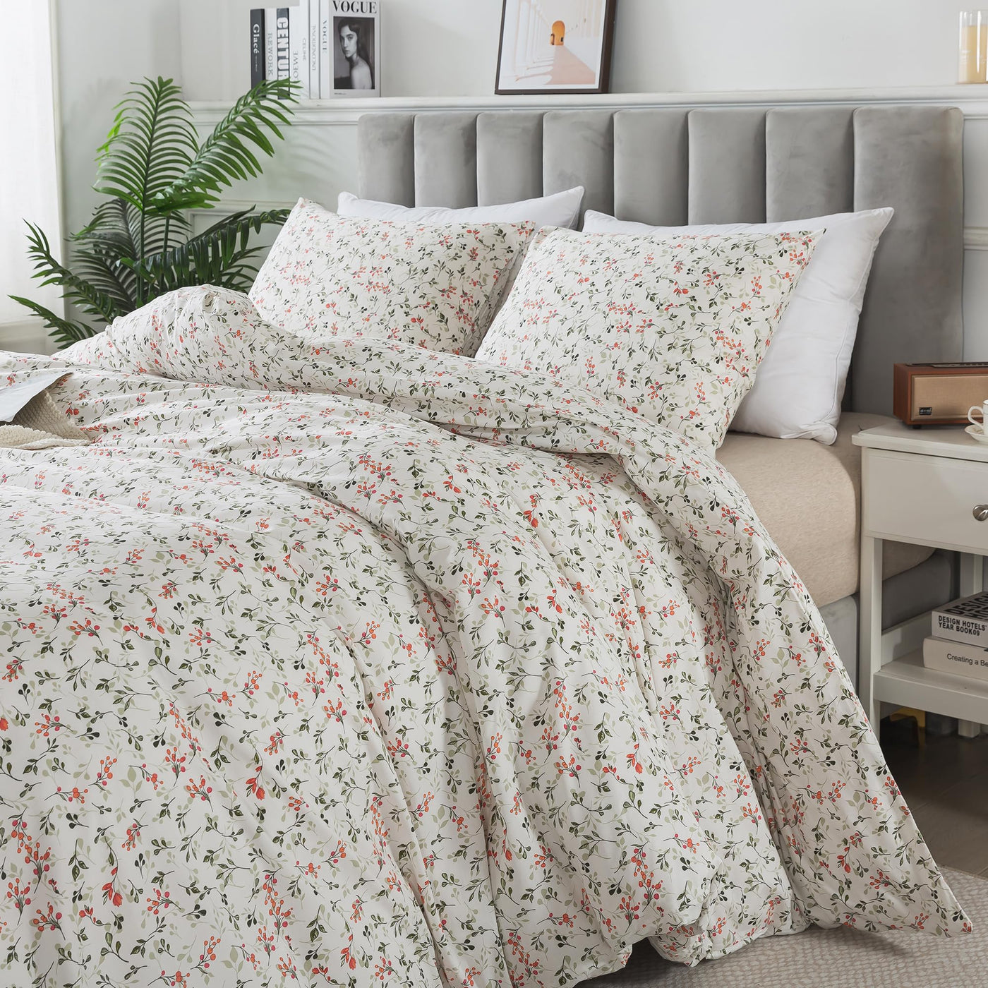 Honeilife Duvet Dover King Size - 100% Cotton Comforter Cover Floral Duvet Cover Sets, Breathable Duvet Cover With Zipper Closur