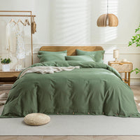 Jellymoni Green Duvet Cover Twin Xl - 100% Washed Cotton Linen Like Textured Comforter Cover, 2 Pieces Breathable Soft Bedding S