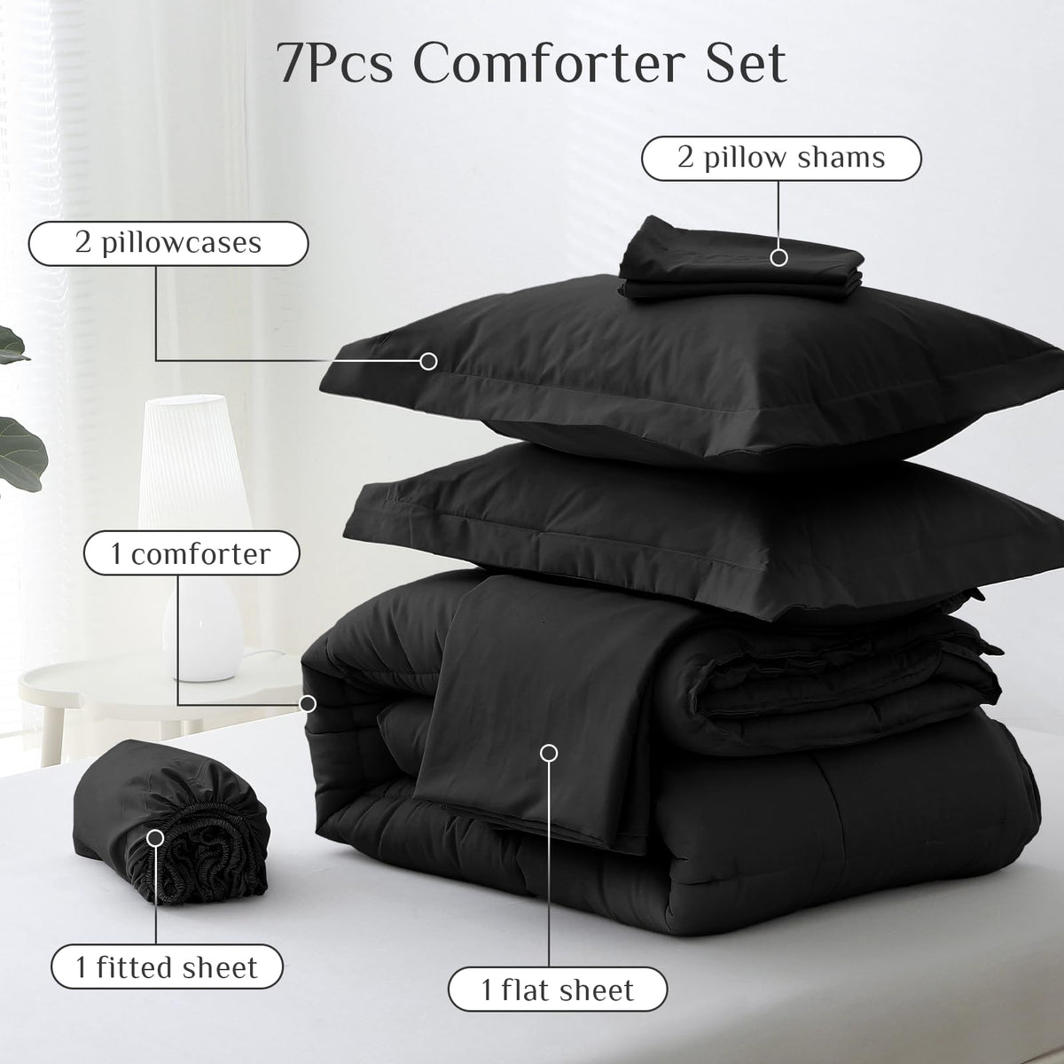 Jollyvogue Queen Comforter Set, 7-Piece Bed In A Bag Queen, Ultra-Soft Comforters Queen Size, Queen Size Comforter Sets, Goose Down Alternative, Oeko-Tex Certified, Sheets & Pillowcases