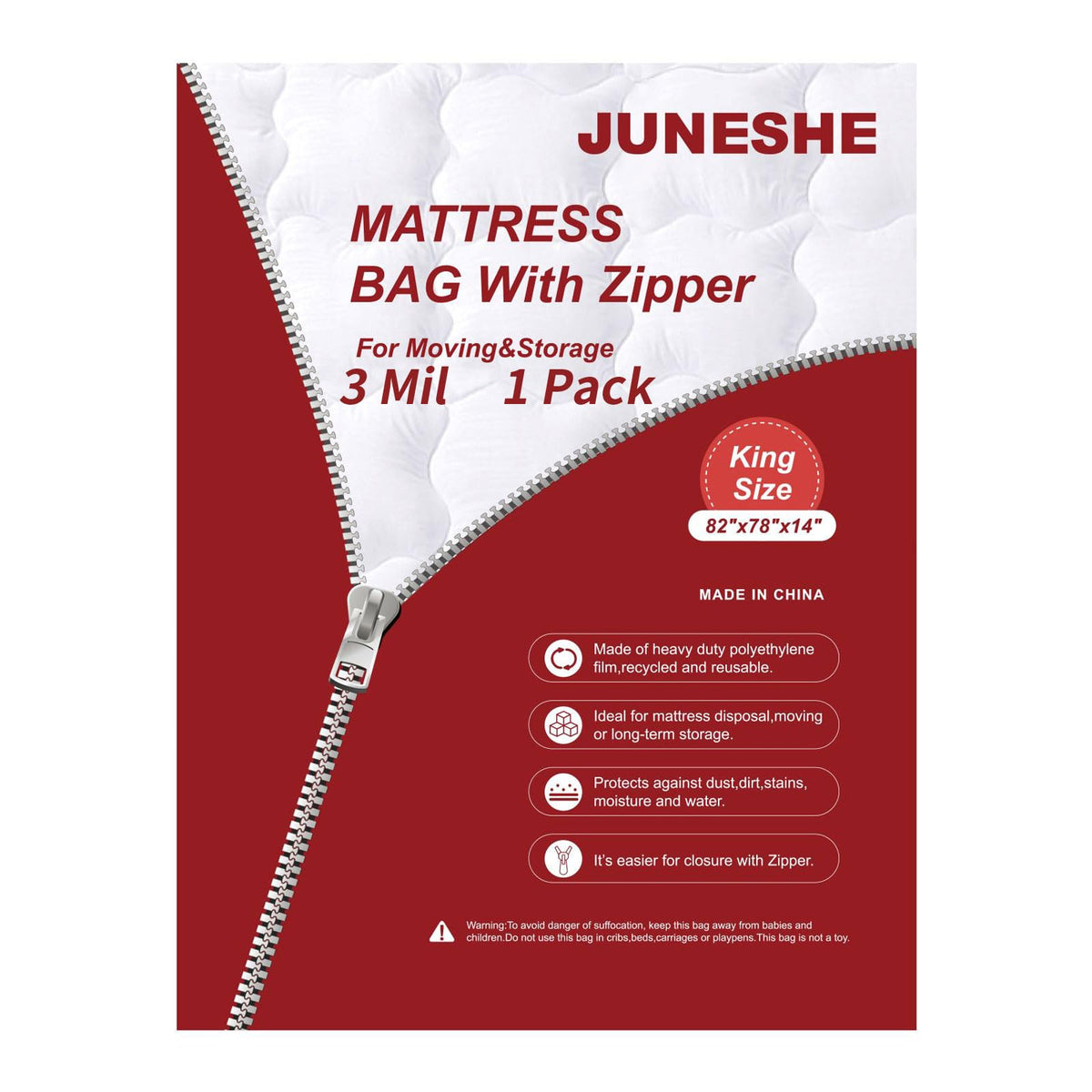 Juneshe King Mattress Bag For Moving And Storage-3 Mil Zipper Plastic Waterproof Mattress Storage Bag