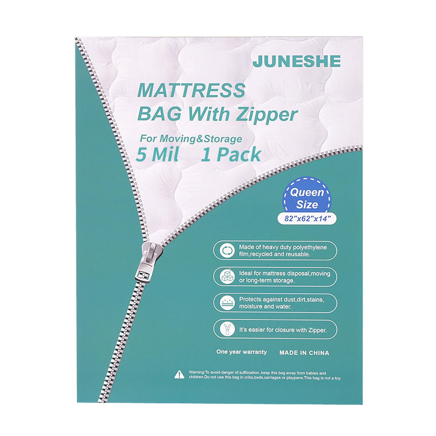 Material Juneshe Mattress Storage Bag Is Made Of 5 Mil Extra-Thick New, Clear Polyethylene. It'S Heavy Duty Enough To Keep Your Expensive Mattress Safe While Moving. With Zipper On The End, It'S Very Easy And Time-Saving To Seal. Size 4 Sizes Are Available Fit For Different Mattress. 77X41X14 Inches For Twin Mattress 77X56X14 Inches For Full Mattress 82X62X14 Inches For Queen Mattress 82X78X14 Inches For King Mattress Be Sure To Measure The Size Of Mattress In Order To Have The Right Bag. Features 5 Mil Extra-Thick New Pe Film Waterproof And Stain Resistant Durable And Economic Option No Vent Holes Recyclable