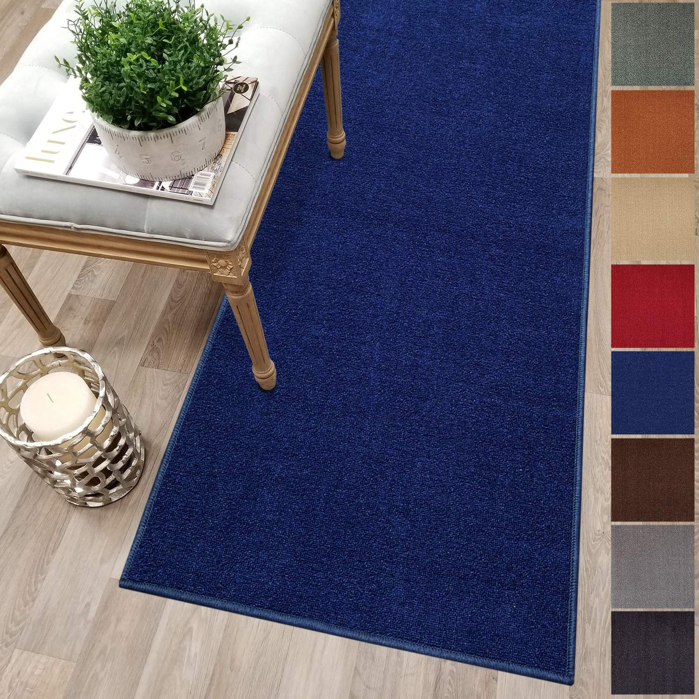 Kapaqua Custom Size Solid Plain Rubber Backed Non-Slip Hallway Stair Runner Rug Carpet Navy Blue, 22In X 9Ft