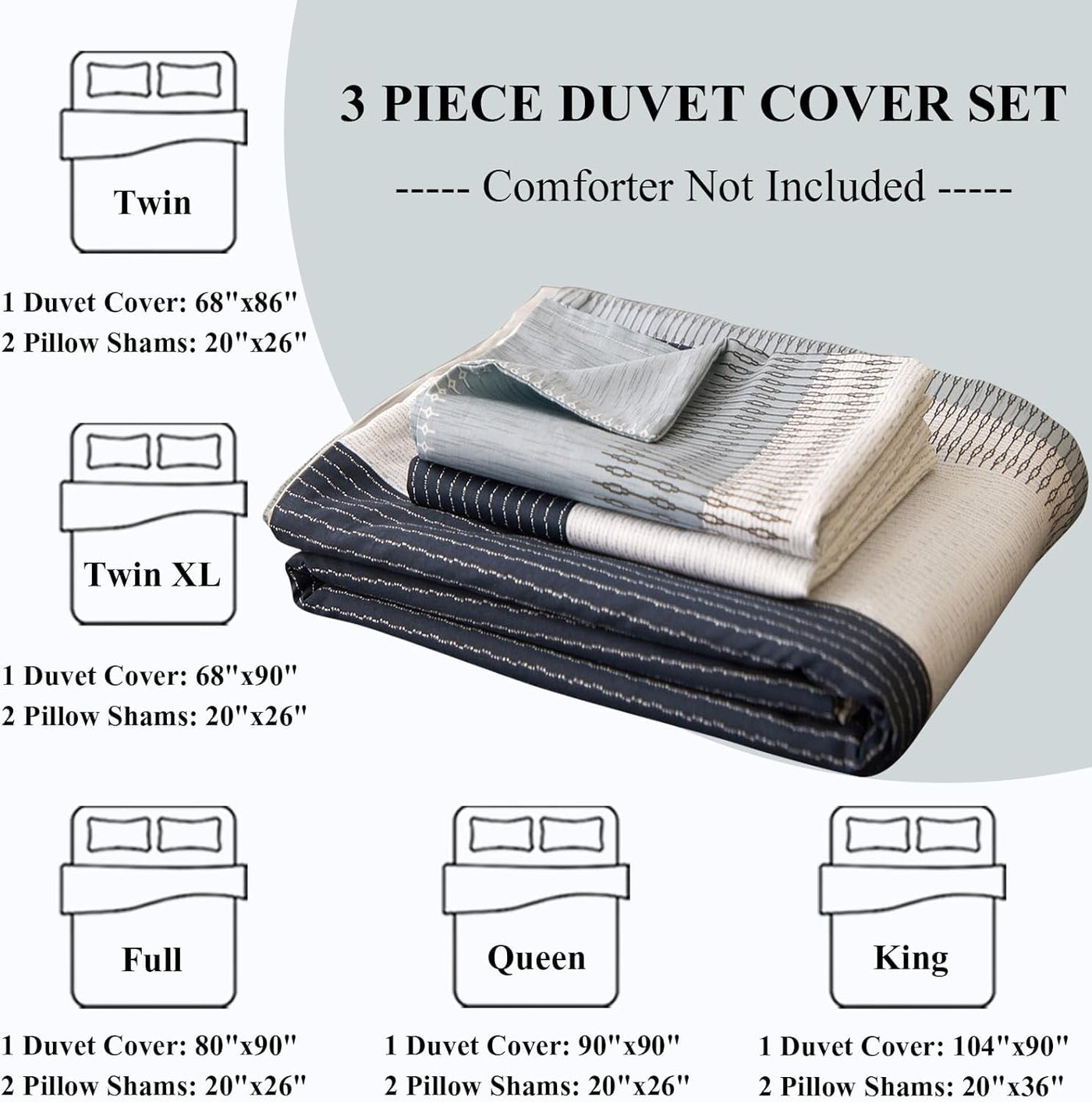 Lifetb Modern Style Geometric Stripe Duvet Cover Set Luxury Soft 100 Cotton Stripe Home Bedding Collections Farmhouse Chic Stripe Comforter Cover 1 Stripe Duvet Cover With 2 Pillowcases