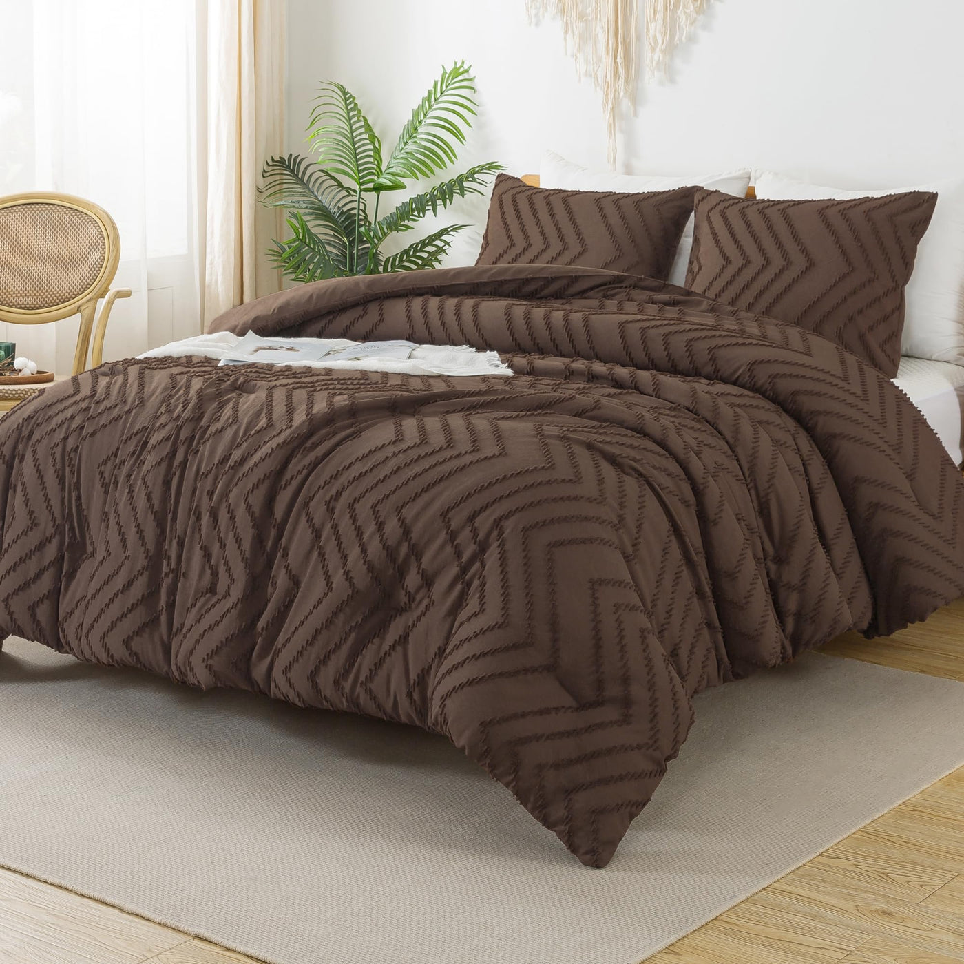 Litanika Brown Queen Size Comforter Sets, 3 Pieces Lightweight Chevron Tufted Bedding Comforter Set, Fluffy Down Alternative Com