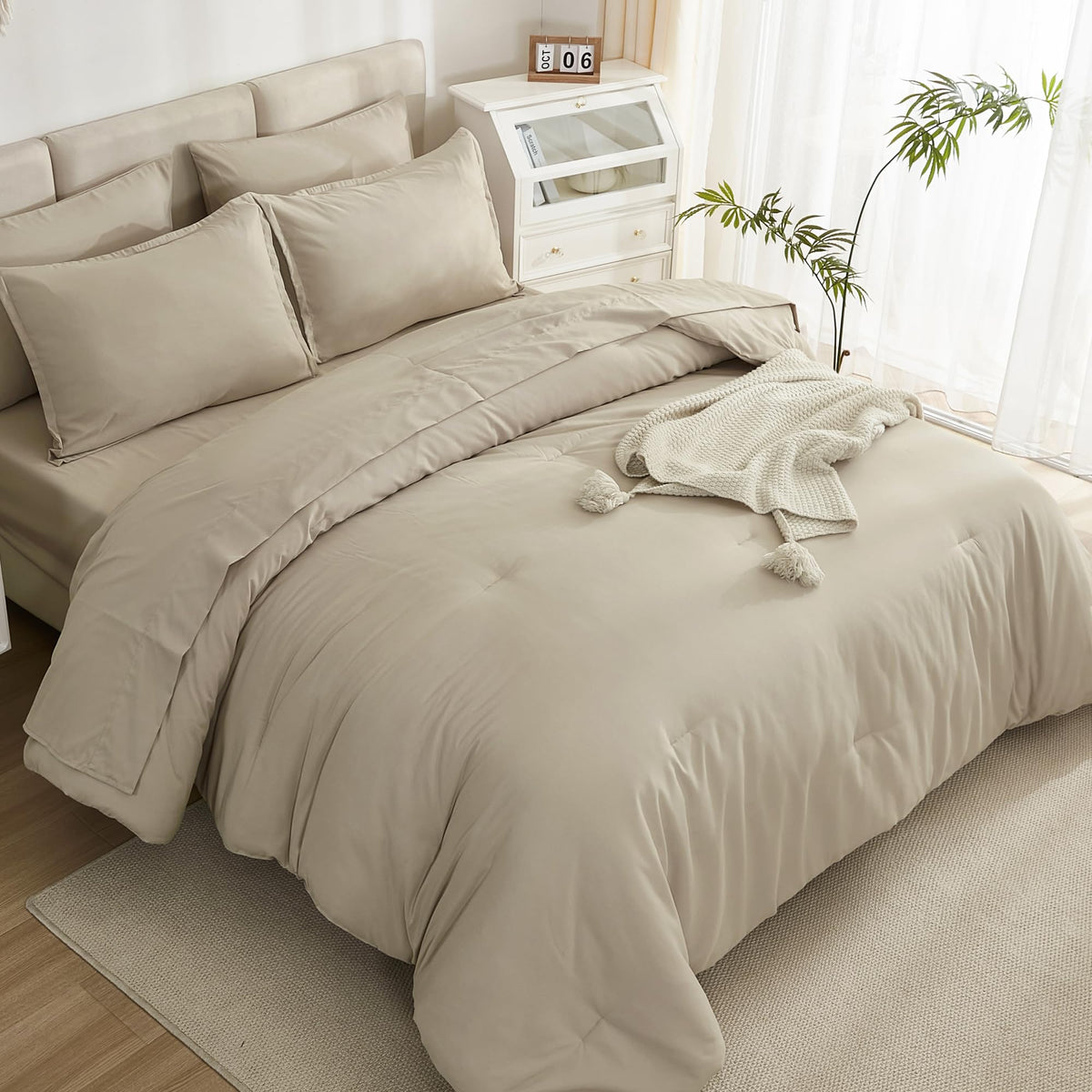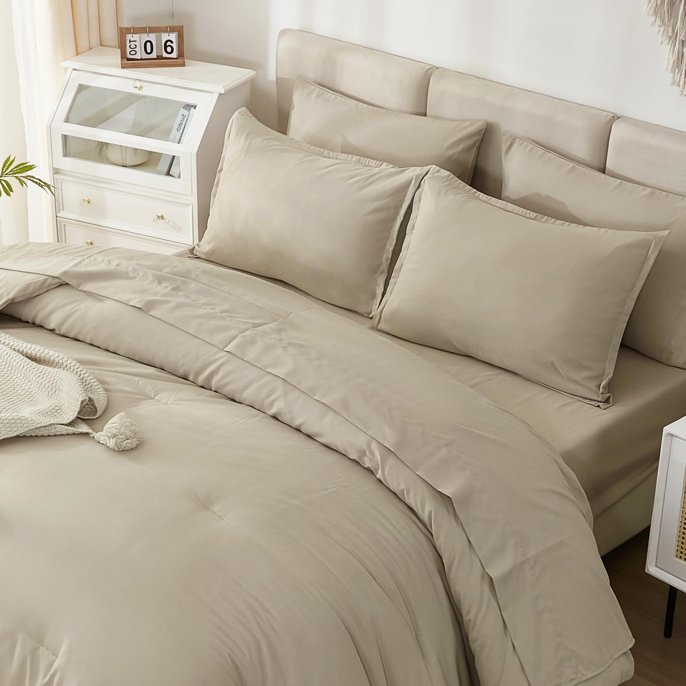 Litanika Comforter King Size Set Khaki - 7 Pieces Bed In A Bag King Beddding Comforter Sets, Plain Lightweight Bed Set With Comf
