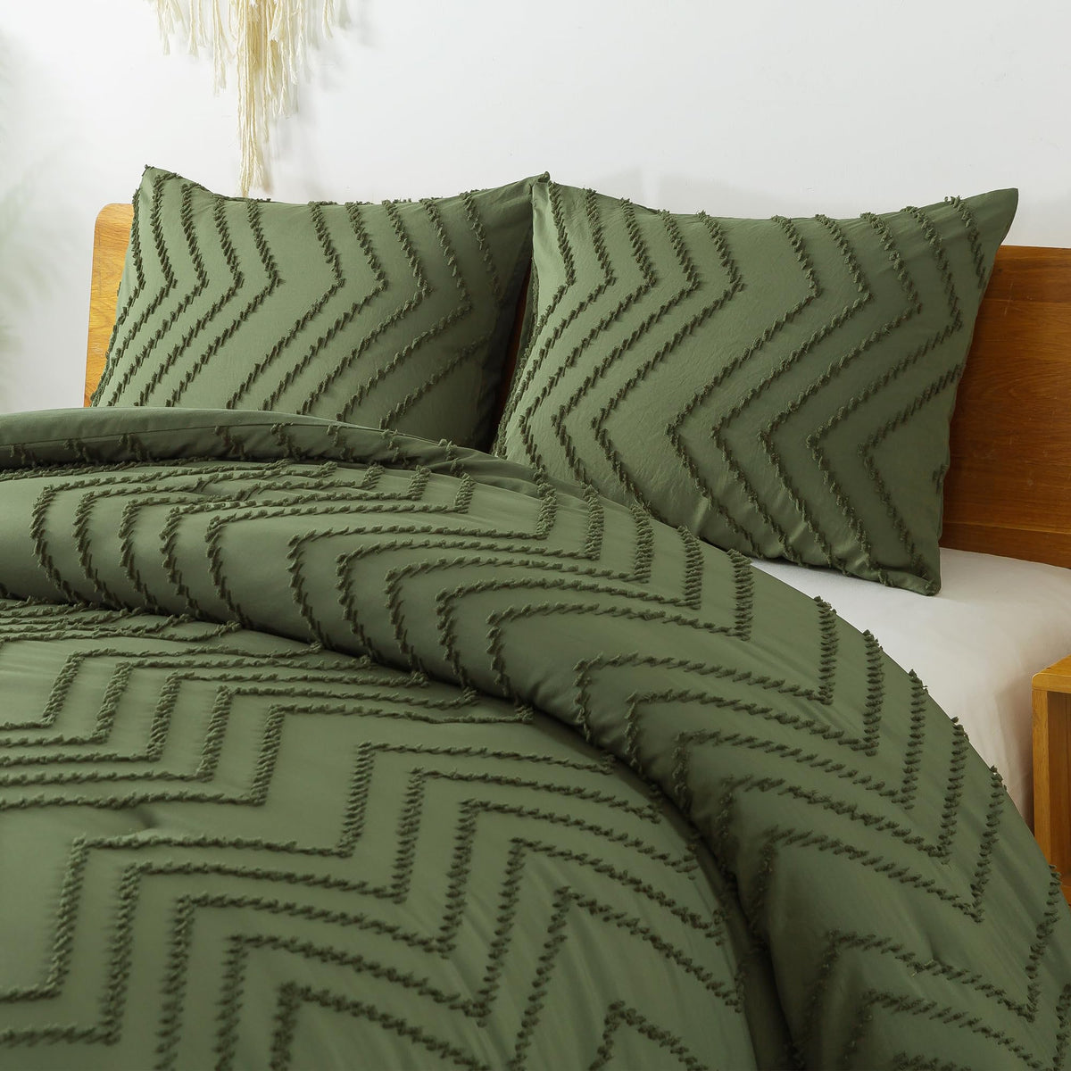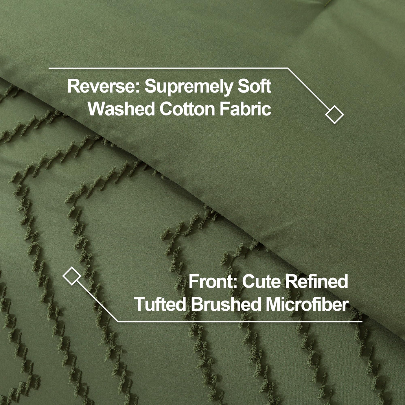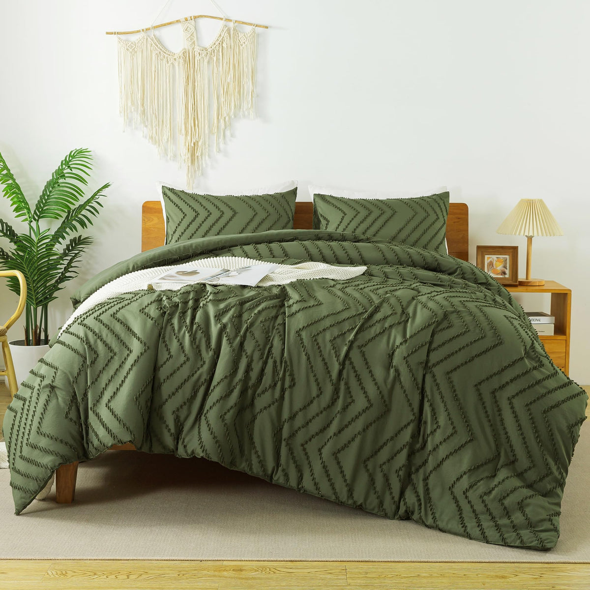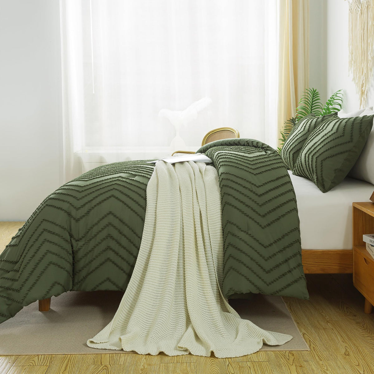 Litanika Dark Olive Green Queen Size Comforter Sets, 3 Pieces Lightweight Chevron Tufted Bedding Comforter Set, Fluffy Down Alte