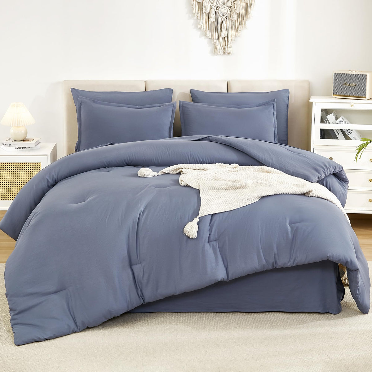 Litanika King Size Comforter Set Bluish Grey - 7 Pieces Bed In A Bag King Beddding Comforter Sets, Solid Lightweight Bed Set Wit