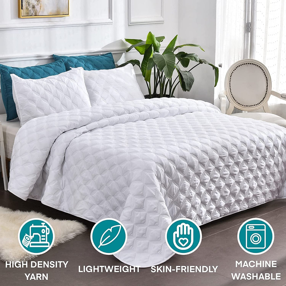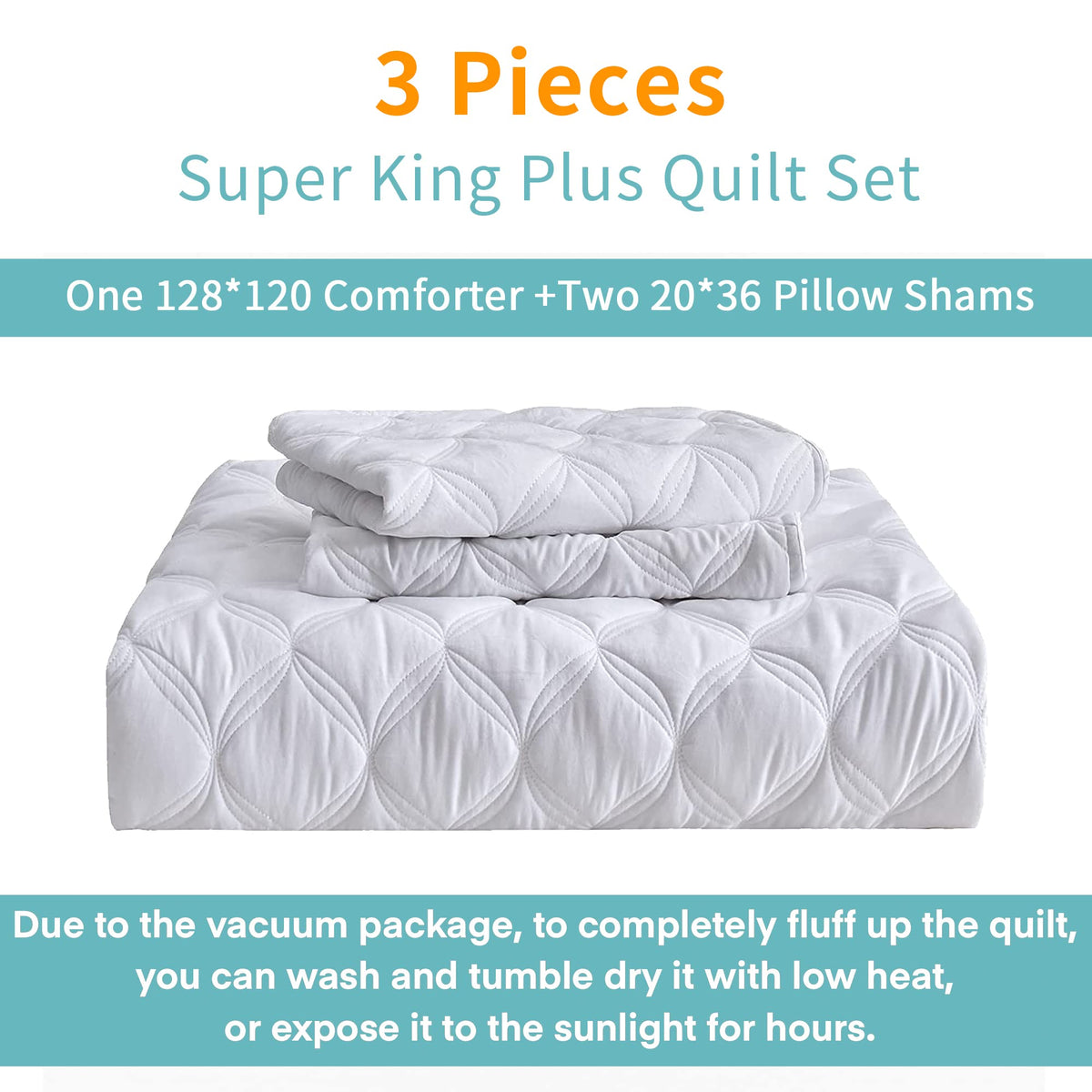 Litanika Oversized King Bedspreads 128X120 Quilt Set - 3 Piece White Lightweight Comforter Coverlets Bedding Cover Bed Decor All