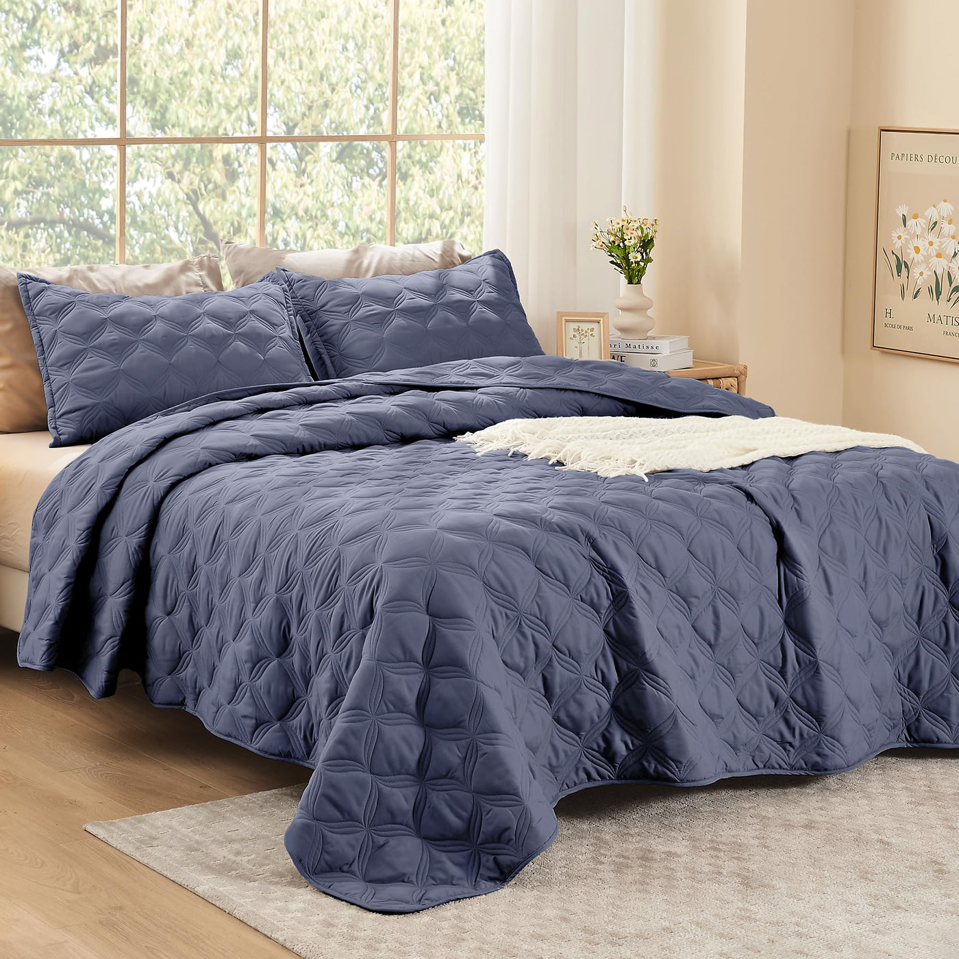 Litanika Oversized King Quilt Bedding Set,120X120Inch Super King Dark Blue Grey Comforter Bedspreads Lightweight Bed Coverlets B