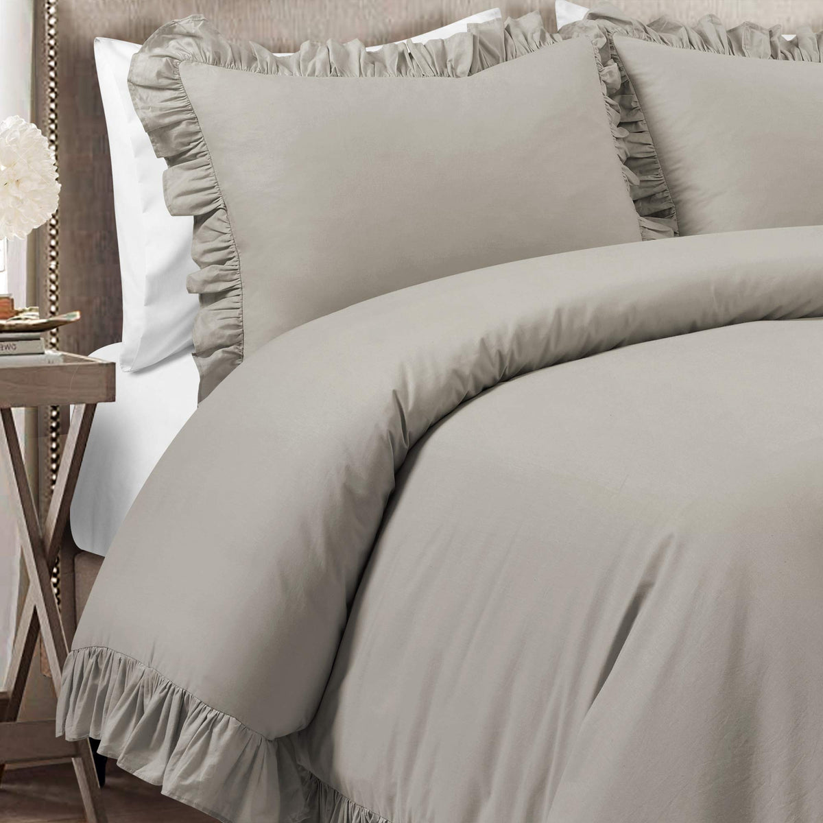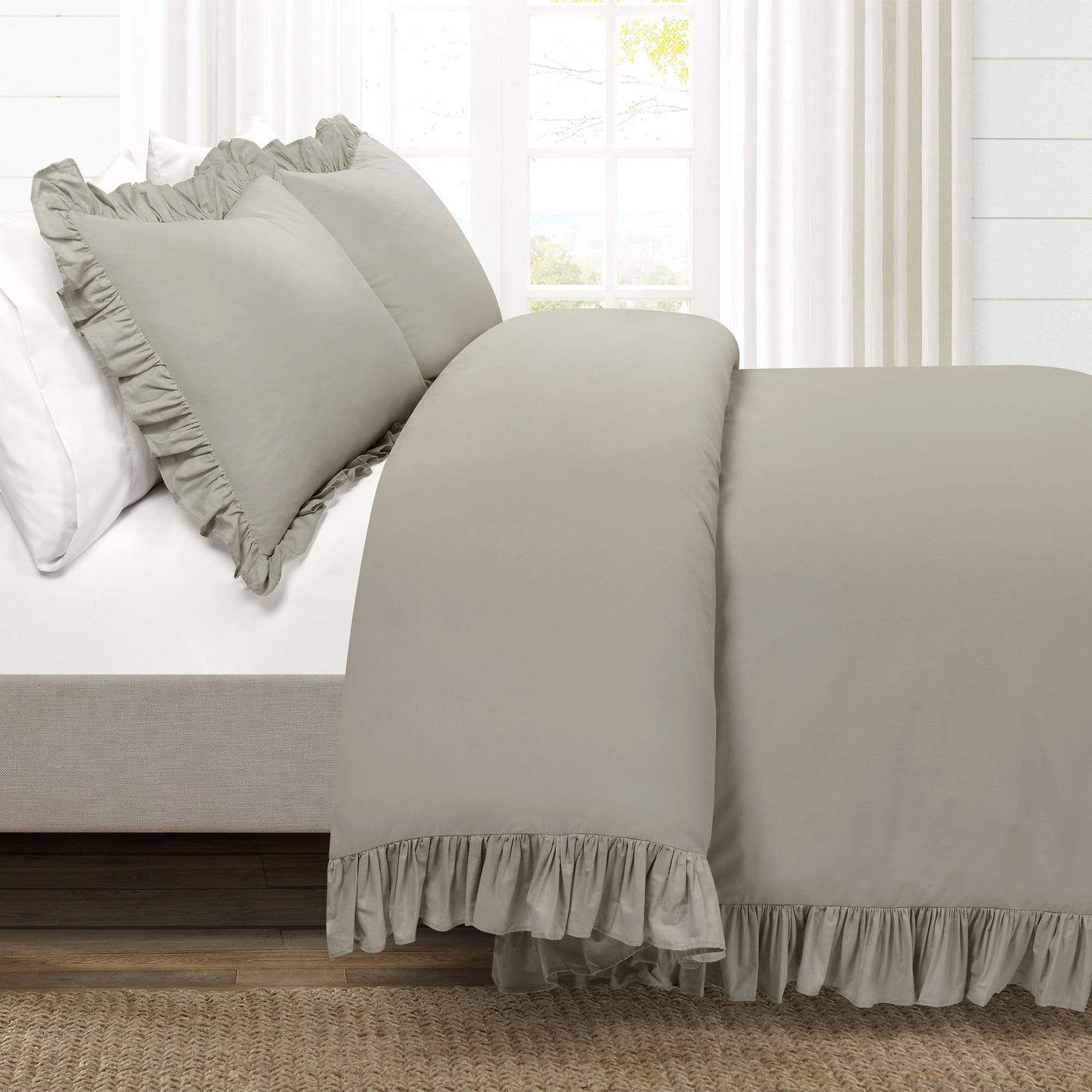 Lush Decor Reyna Ruffle 100% Cotton Duvet Cover Set - 3 Piece Cozy Ruffled Bedding Set - Timeless Elegance And Comfort - Full/ Q
