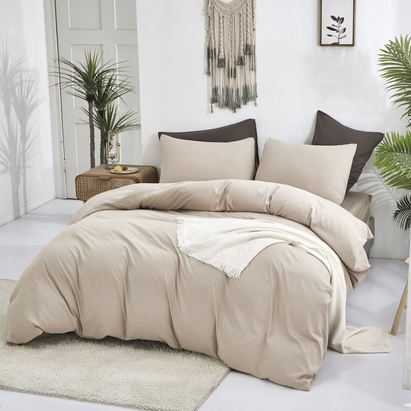 Luxlovery Beige Coffee Comforter Set Full Light Khaki Bedding Comforter Set Cotton Bedding Set Solid Cream Khaki Blanket Quilts
