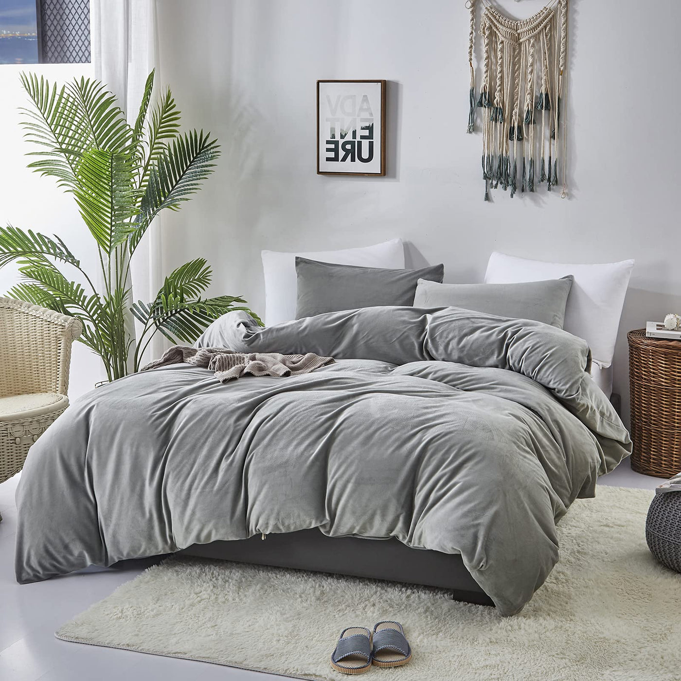 Luxlovery Grey Velvet Comforter Set Full Plush Fluffy Bedding Comforter Set Full Gray Winter Thick Warm Flannel Solid Grey Sherp