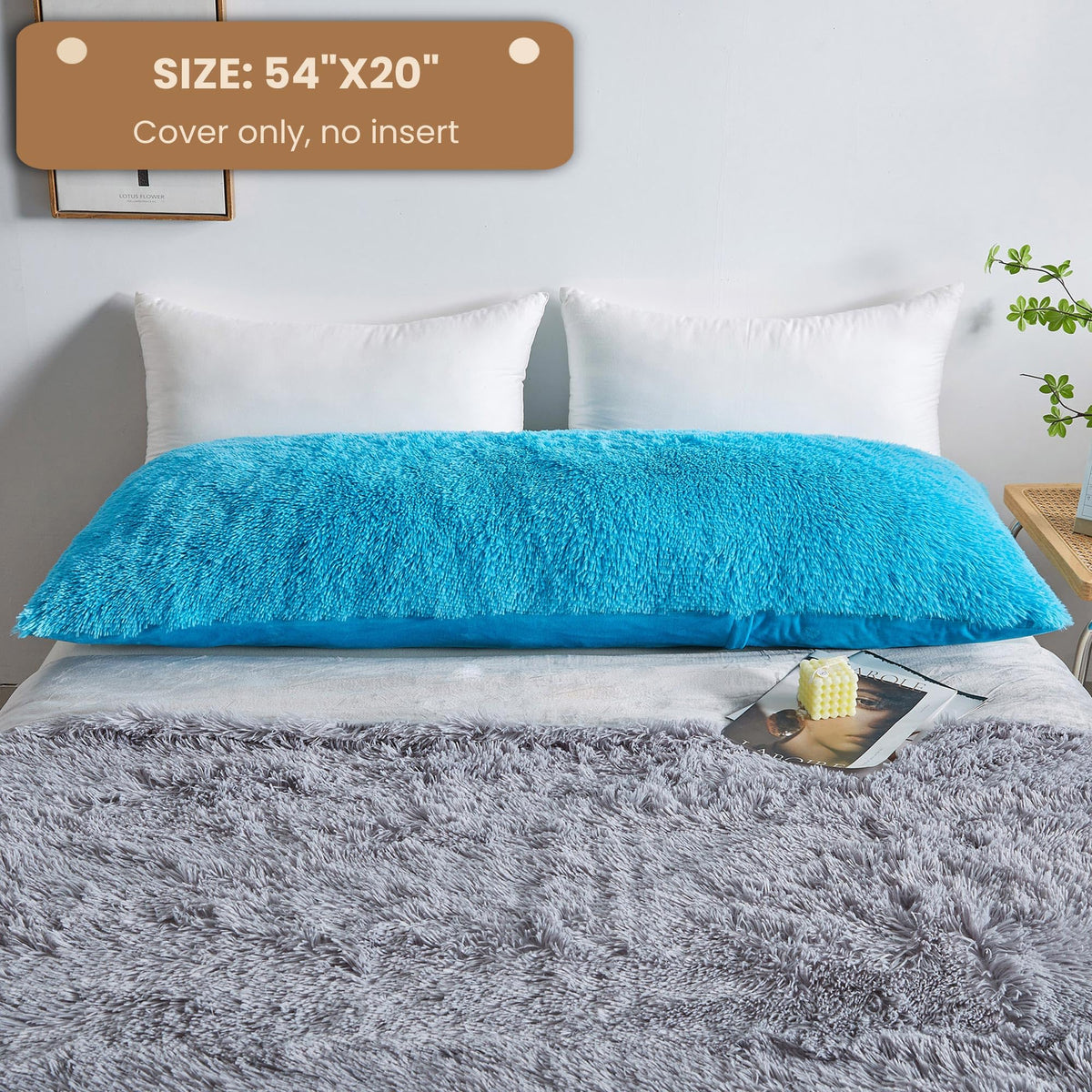 Mego Luxury Fluffy Body Pillow Cover, 20X54 Shaggy Faux Fur Body Pillow Case, Blue Soft Plush Fuzzy Body Pillowcase, Decorative