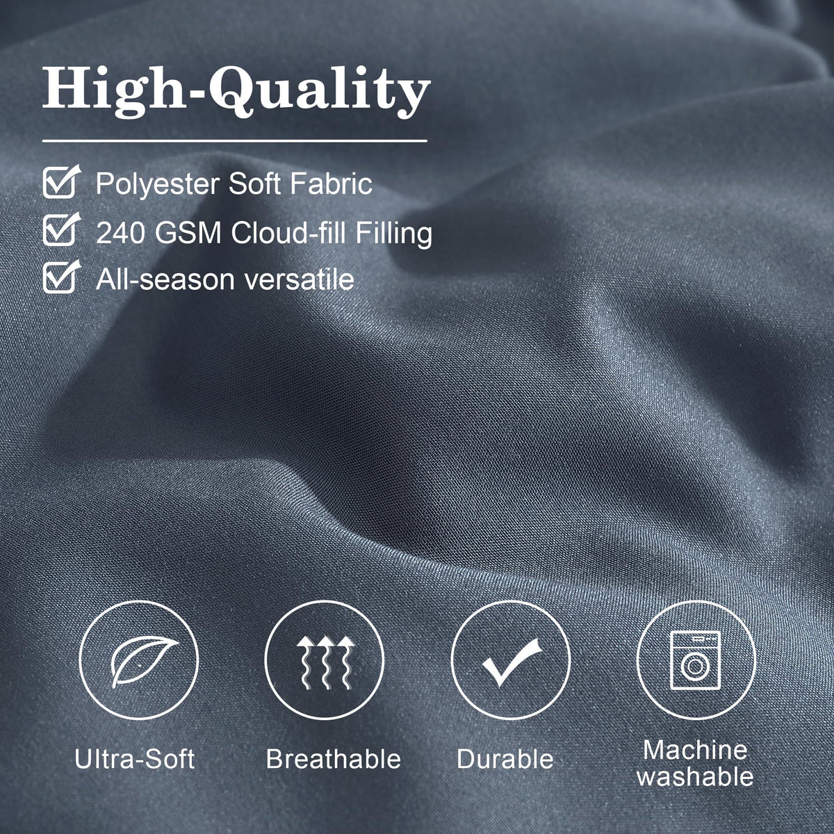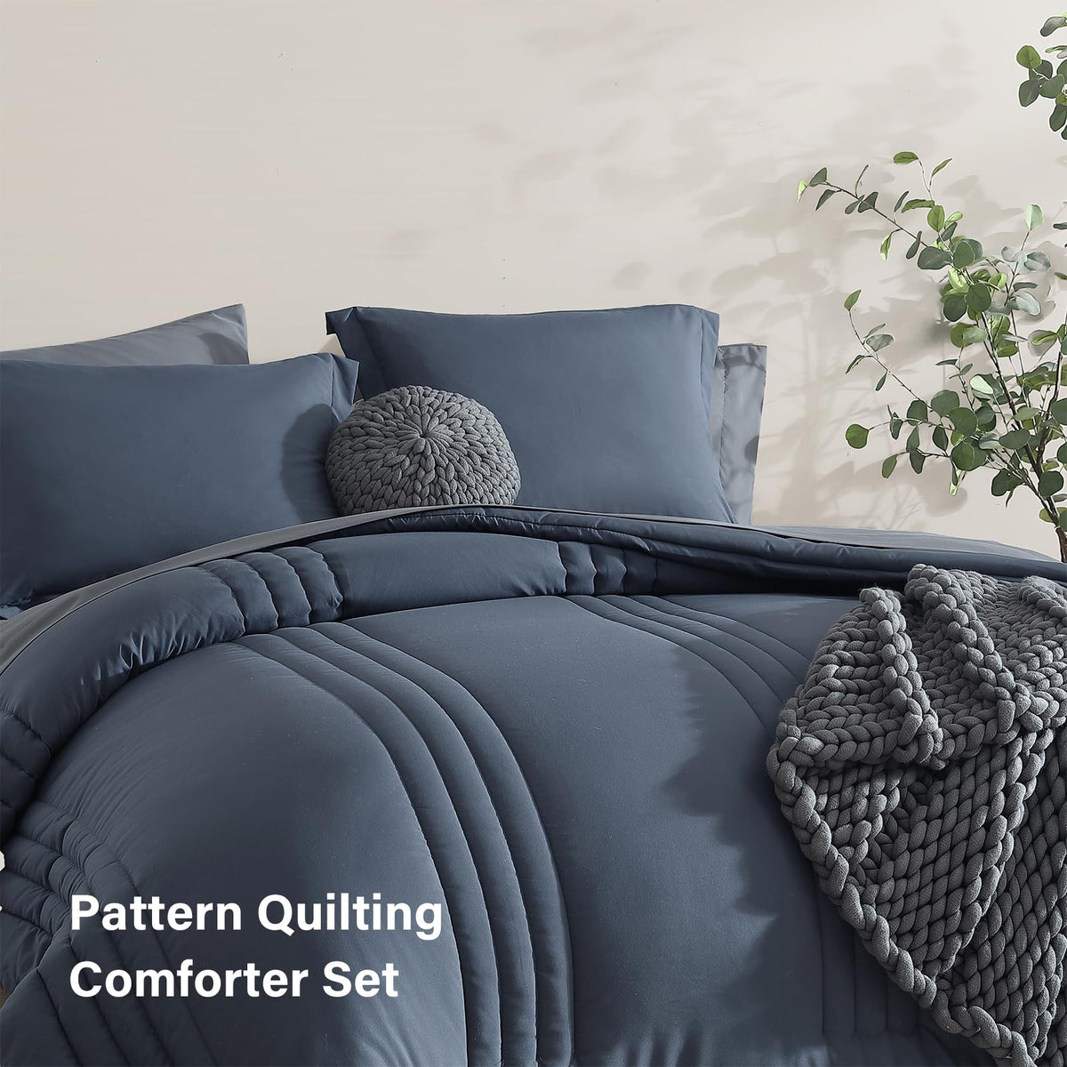 Monbix Queen Comforter Set - 7 Pieces Blue Grey Bed In A Bag Queen Bedding Sets With Comforters, All Seasons Down Alternative Co