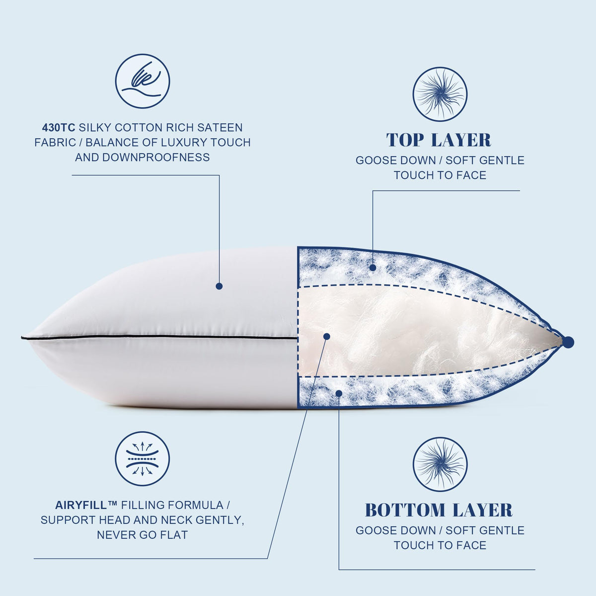 Q: What makes the Mosluna Feather Down Pillows suitable for side sleepers?A: The Mosluna Feather Down Pillows feature a three-layer filling with premium down feathers on the top and bottom layers, providing gentle support and cradling for the neck. This design ensures that side sleepers can maintain proper spinal alignment throughout the night.