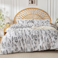 Muxhomo Duvet Cover Full Size, Reversible Floral White Duvet Cover Set With Zipper Closure, 3 Pieces Botanical Patterns Soft Mic
