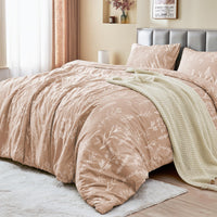 Muxhomo Duvet Cover Queen Size, Reversible Floral Rosy Gold Duvet Cover Set With Zipper Closure, 3 Pieces Botanical Patterns Sof