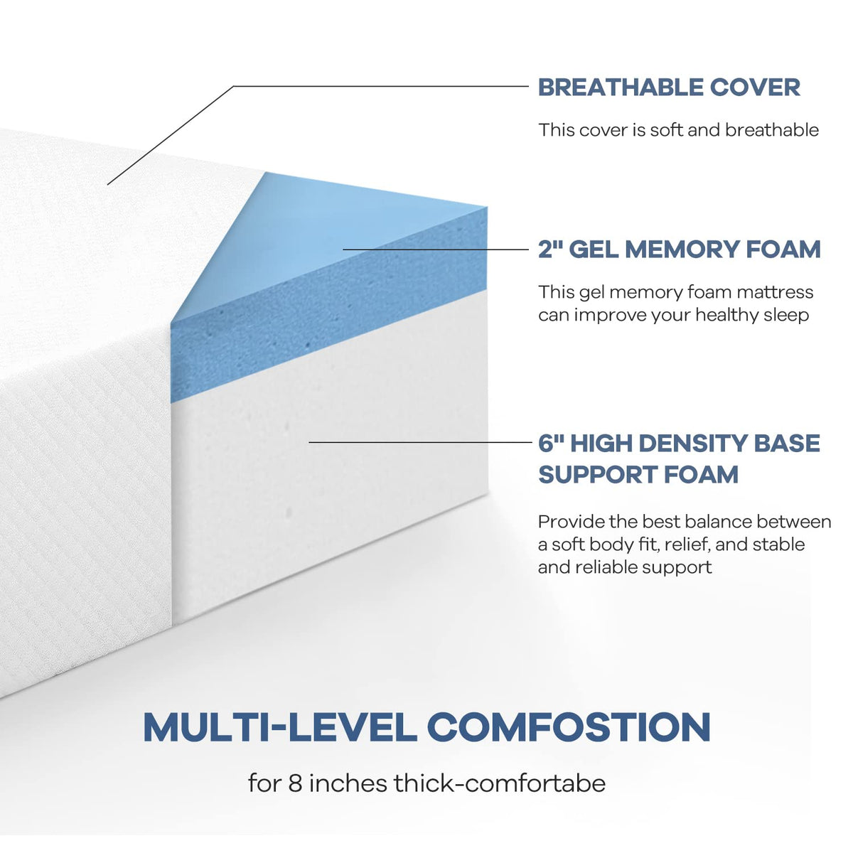 Nchanmar 8 Inch Twin Gel Memory Foam Mattress Pressure Relieving, Cooling Gel Foam, Certipur-Us Certified, Bed-In-A-Box, Pressur
