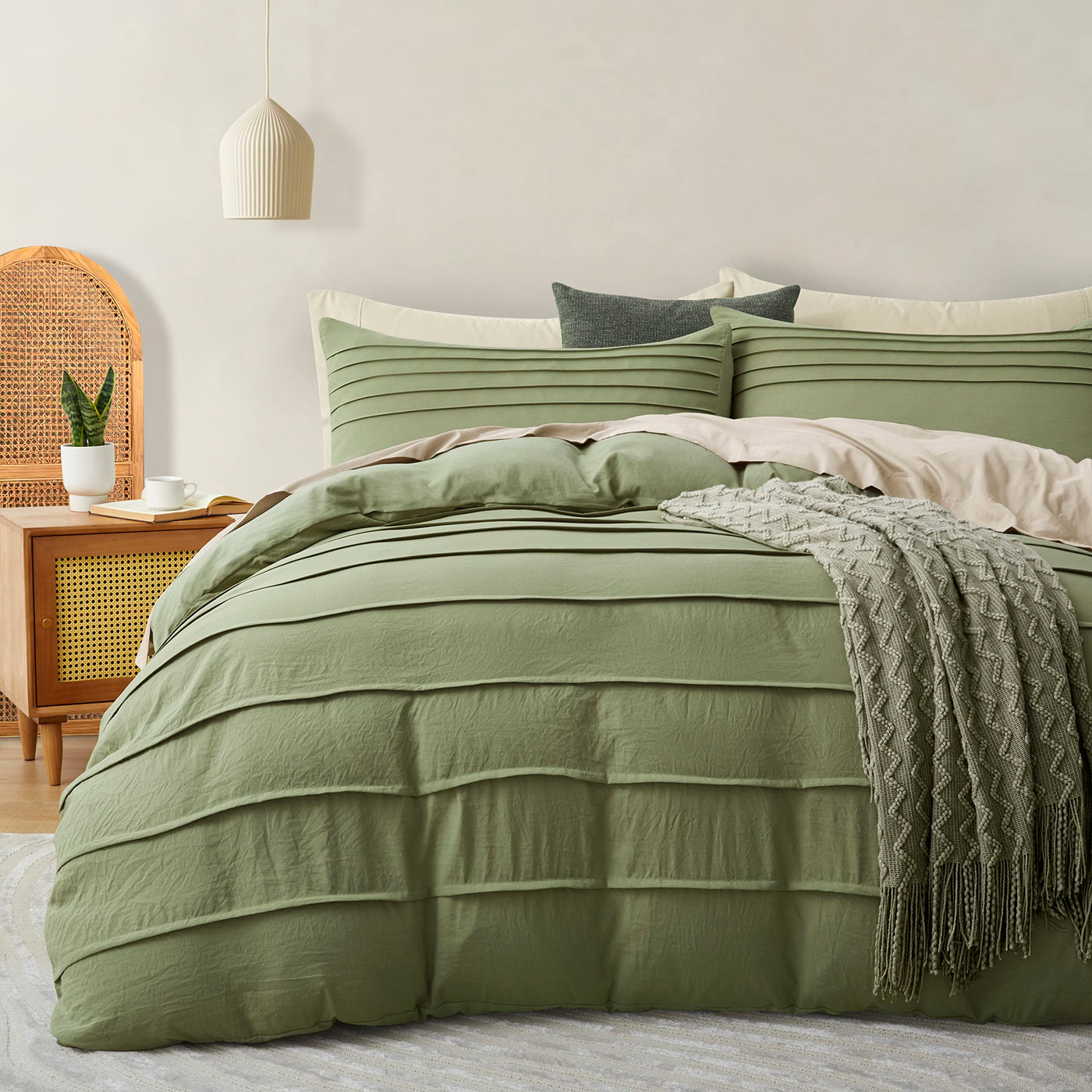 Oli Anderson Sage Green Duvet Cover Queen Size - Pleated Queen Duvet Cover, 3Pcs Soft And Breathable Textured Bedding Set With Z