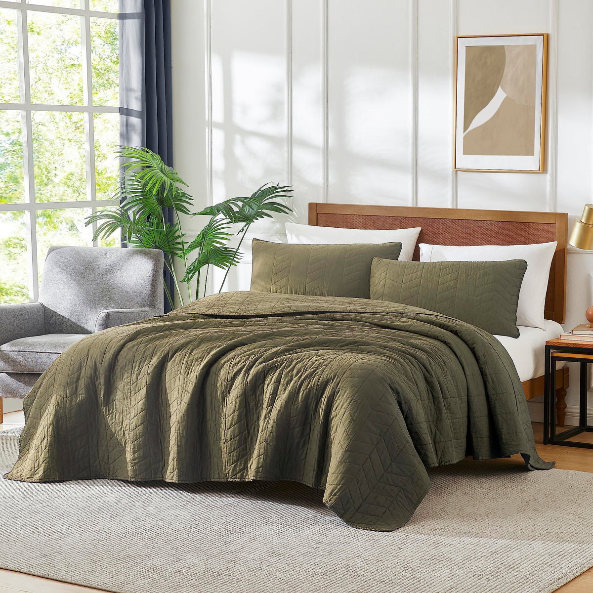 Palassio Green 100% Cotton Quilt Twin Size Bedding Sets With Pillow Shams, Olive Lightweight Soft Bedspread Coverlet, Sage Quilt