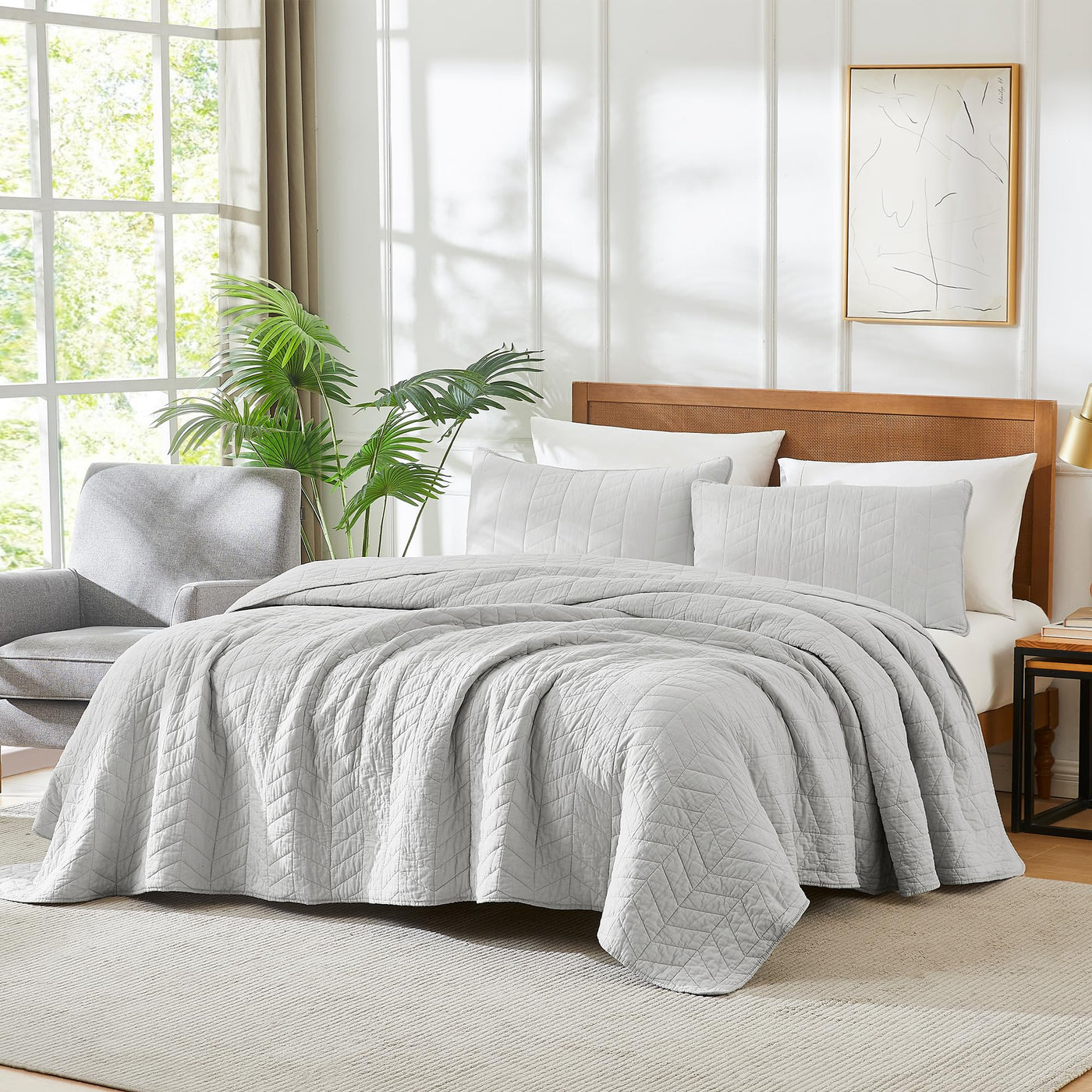 Palassio Light Grey 100% Cotton Quilt Queen Size Bedding Sets With Pillow Shams, Lightweight Soft Bedspread Coverlet, Quilted Co