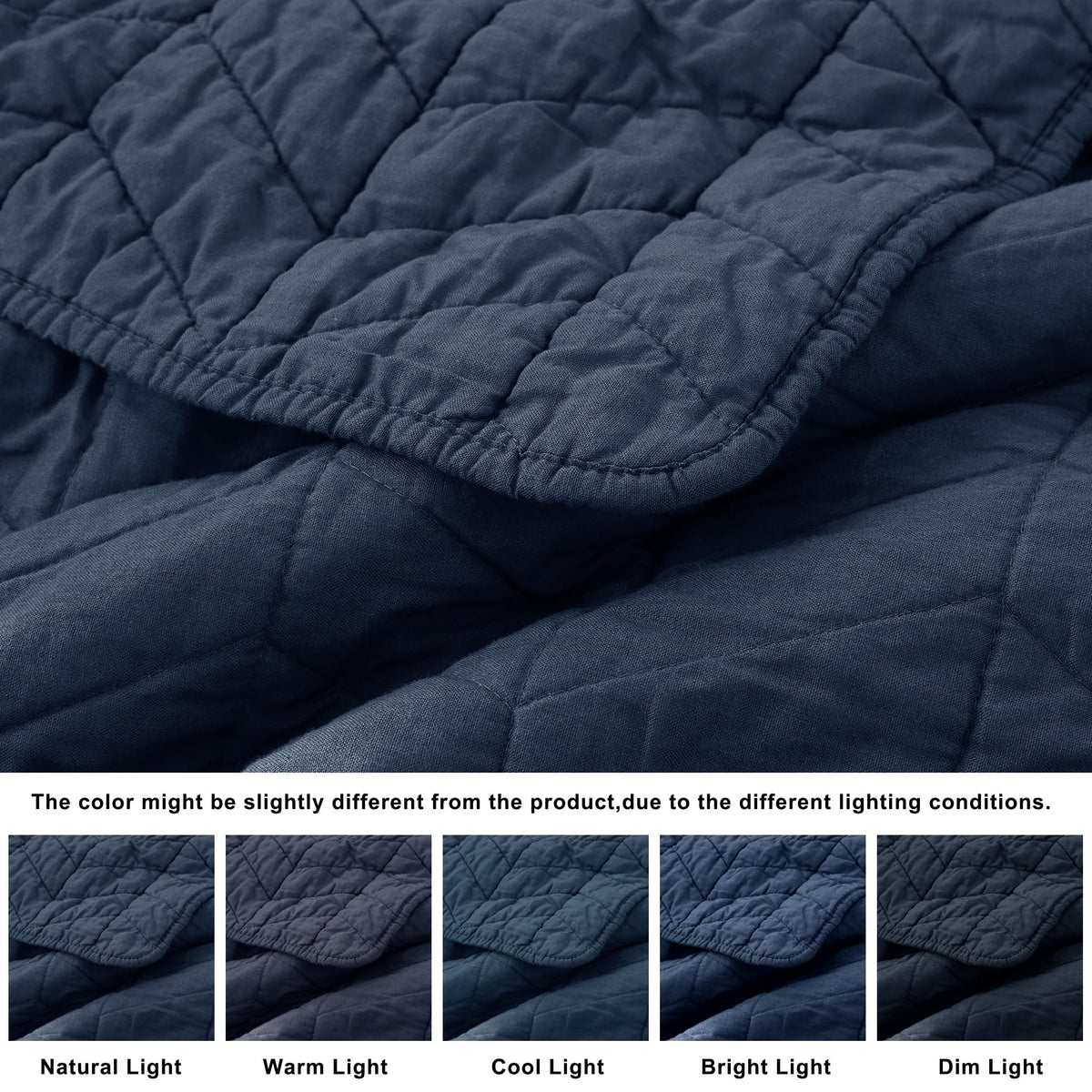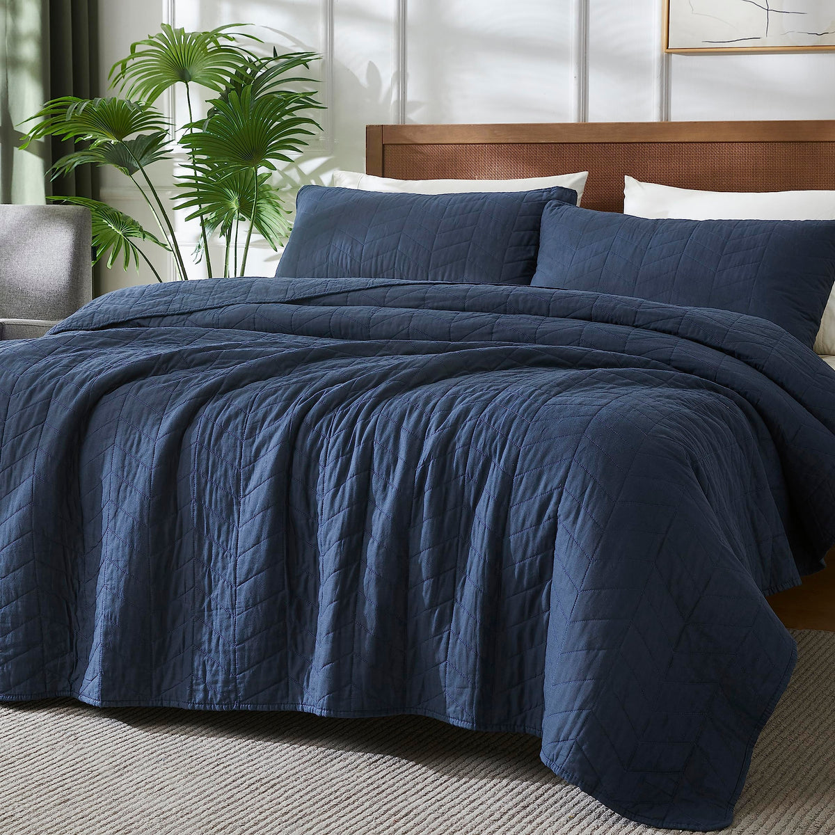 Palassio Navy Blue 100% Cotton Quilt King Size Bedding Sets With Pillow Shams, Lightweight Soft Bedspread Coverlet, Quilted Comf