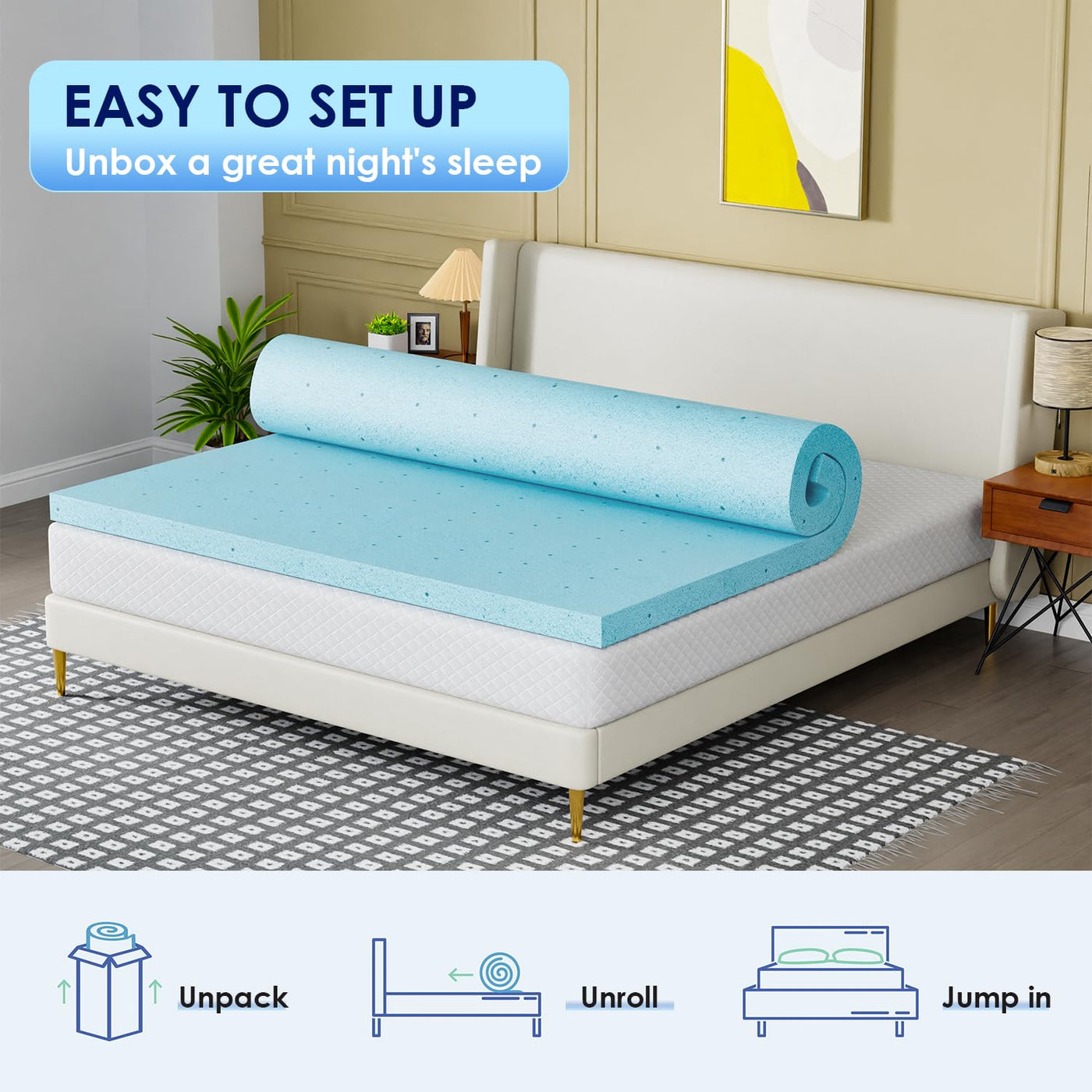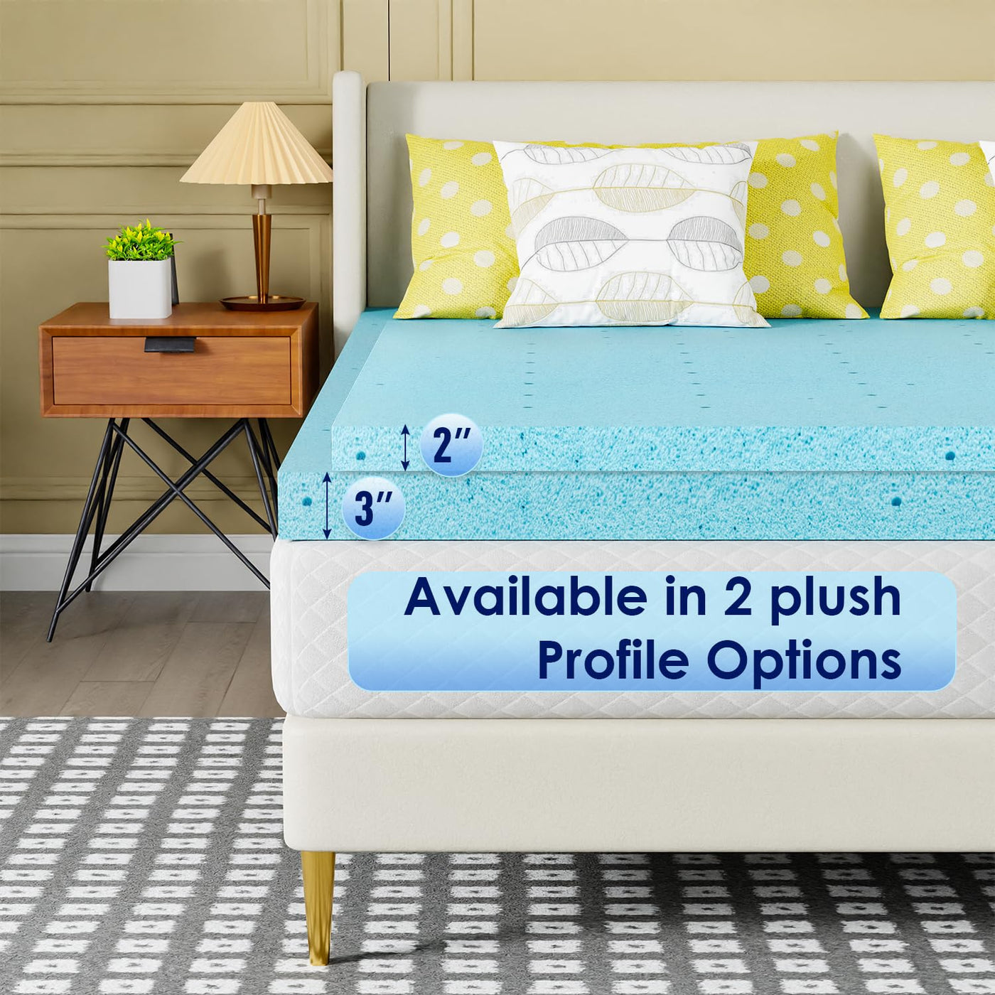 Paylesshere 3 Inch Gel Memory Foam Mattress Topper/Cooling Gel Infused Mattress Topper/Certipur-Us Certified, King Blue