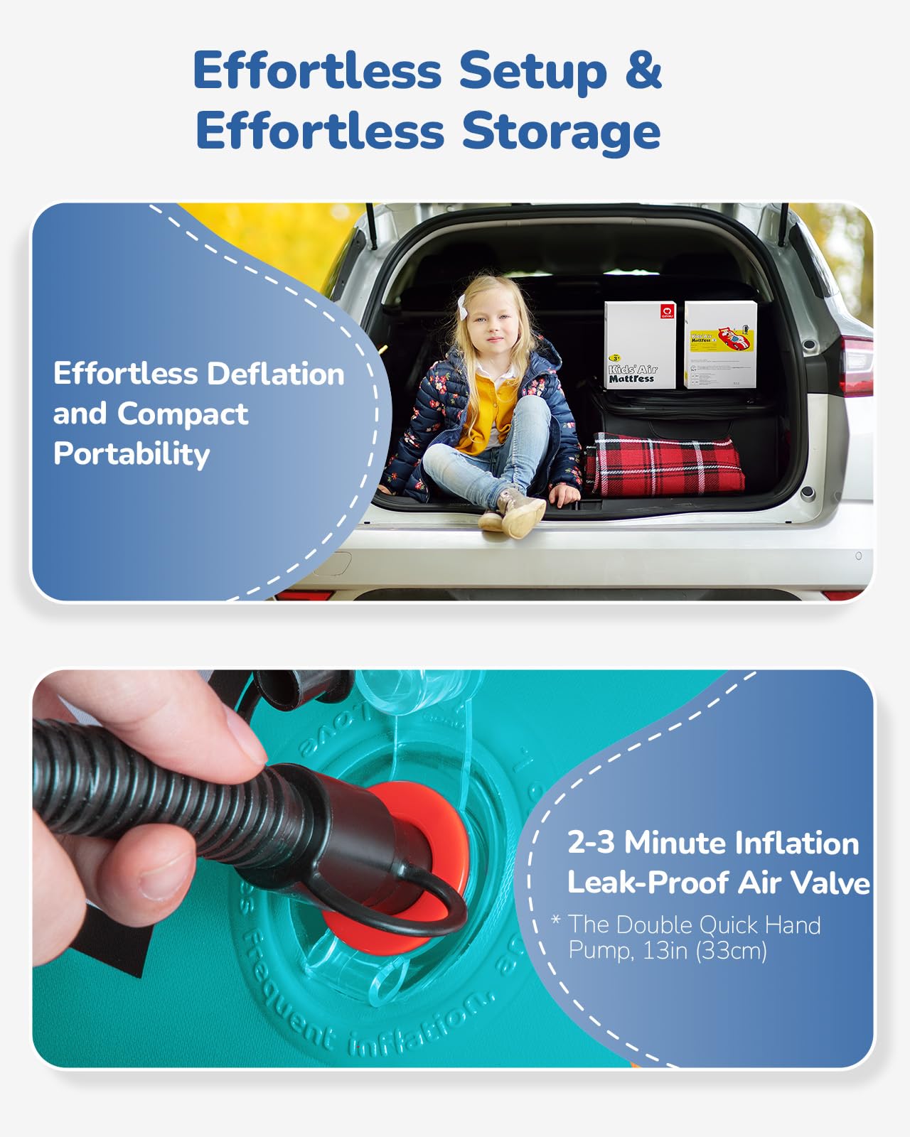 A Perfect Combination Of The Toddler Blow Up Mattress And Sporting Race Car With Qpau Kids Air Mattres. This Inflatable Toddler Bed Is Designed To Be The Centerpiece Of Your Child'S Room, Offering A Perfect Spot For Play And Rest With Its Unique Car Exterior Design. Kids Blow Up Bed Made From Durable Pvc Material, Ensuring The Health And Safety Of Your Children During Use. The Smooth Surface Of The Bed Is Easy To Clean, And Maintenance Is A Breeze. Equipped With A Portable Manual Pump, This Toddler Inflatable Bed Is A Breeze To Inflate. No Electricity Required - You Can Have The Toddler Cot Bed Ready In Minutes, Making It Perfect For Family Gatherings, Outdoor Activities, Or Camping Trips. The Design Of This Portable Kids Bed Takes Into Account The Active Nature Of Children, With A Sturdy Structure That Remains Stable Even When Kids Jump And Play. The Toddler Bed With 10 Inch High Side Rails To Protect Additional Safety, Preventing Children From Accidentally Rolling Off While Sleeping. More Than Just A Sleeping Tool, The Car-Shaped Kids' Inflatable Bed Is A Fun Companion Throughout Your Child'S Growth. With Its Unique Design And Practicality, It Has Won The Hearts Of Parents And Children Alike. Give Your Child A Happy Childhood Starting With This Inflatable Toddler Travel Bed.