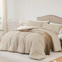 Quataly Full Comforter Sets Oatmeal,3Pcs Soft Lightweight Breathable Bedding Comforter Sets For All Season, Full Size(82'' 86''