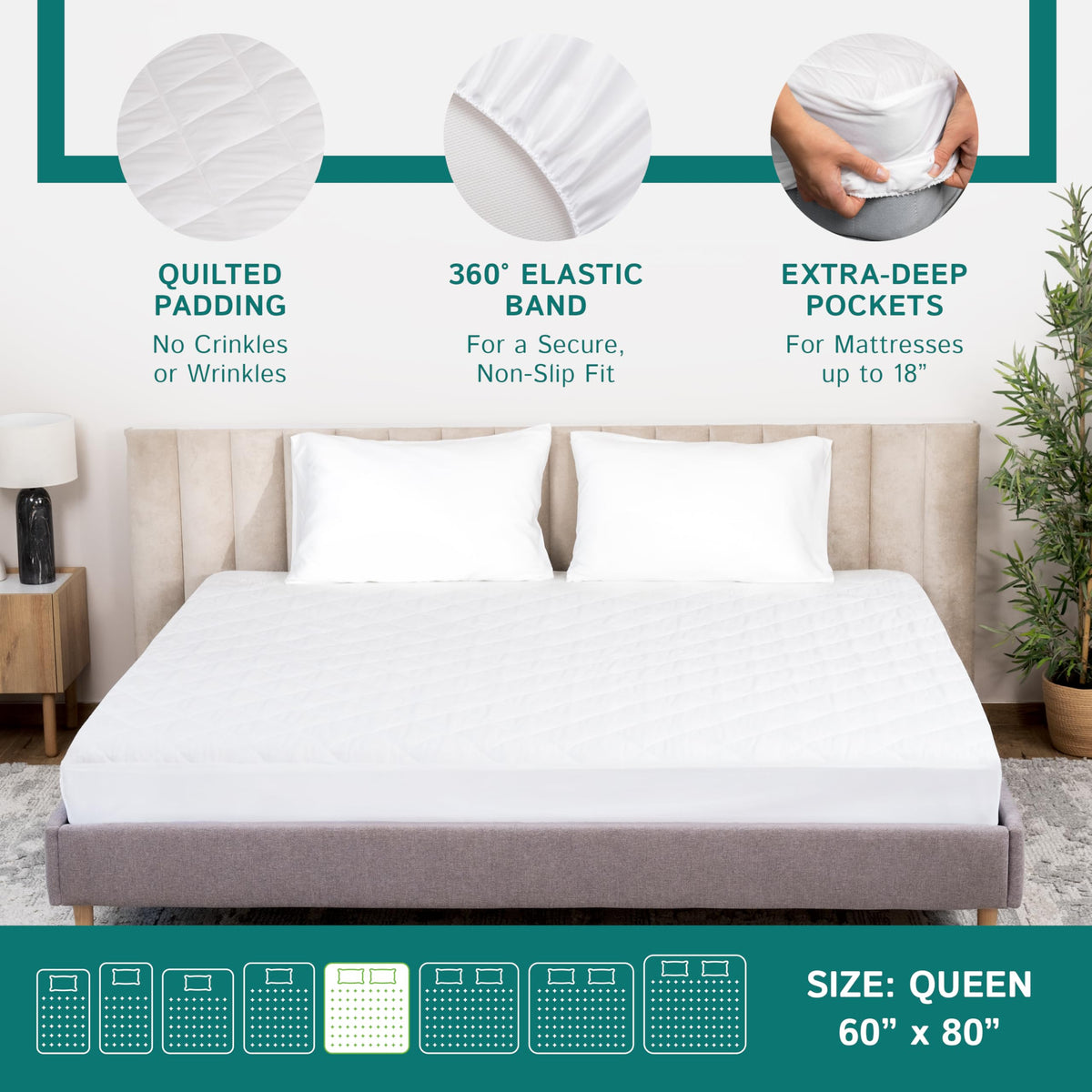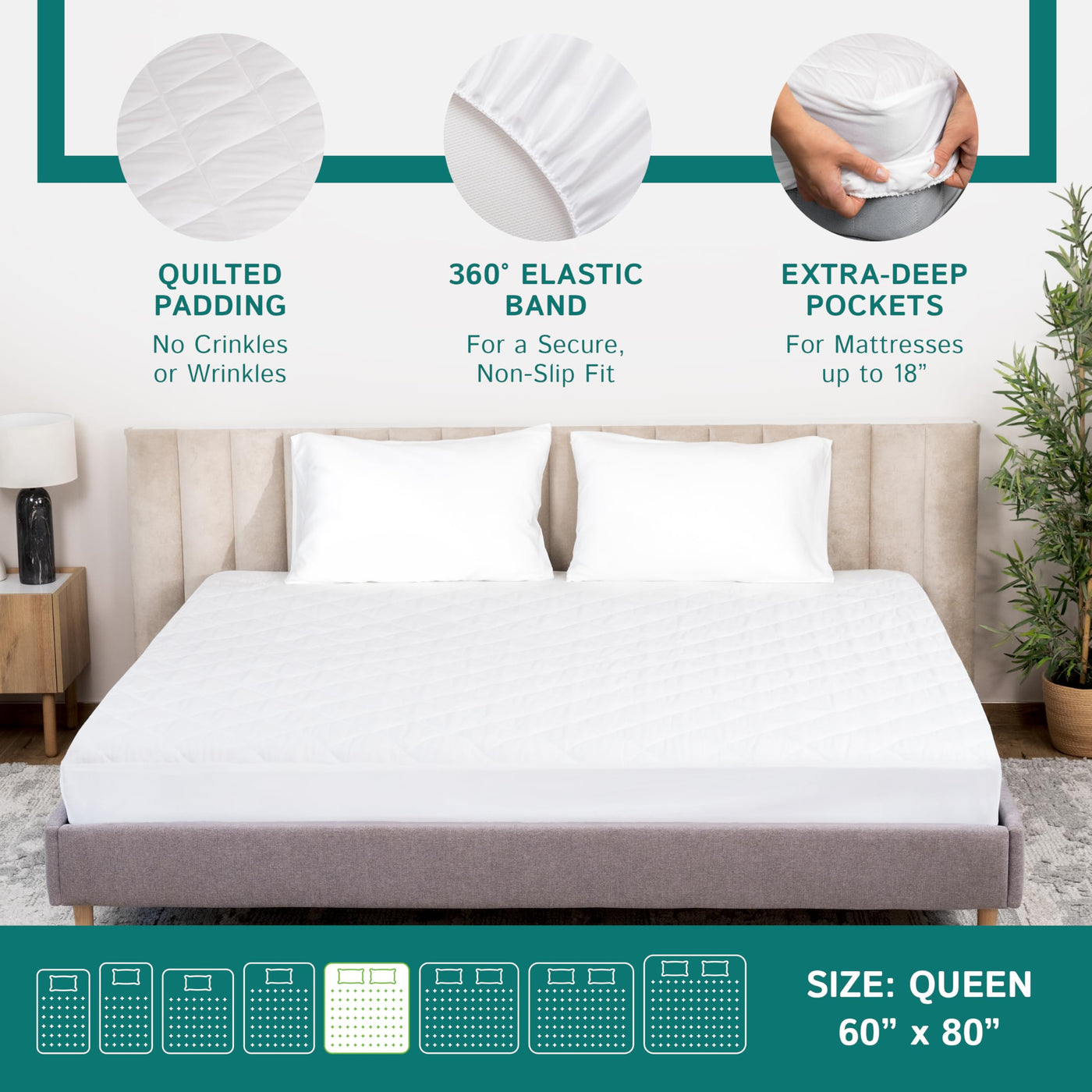 Queen Size Quilted Mattress Pad - Fitted Waterproof Mattress Protector, Pillow Top Mattress Topper, Premium Quality Hypoallergen