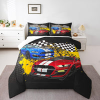 Racing Car Full Size Comforter Set,Cool Sports Car Bedding Set For Adults Teens,Children Race Car Competition Comforter Luxury E