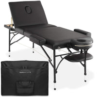 Saloniture Professional Portable Lightweight Tri-Fold Massage Table With Aluminum Legs - Includes Headrest, Face Cradle, Armrest