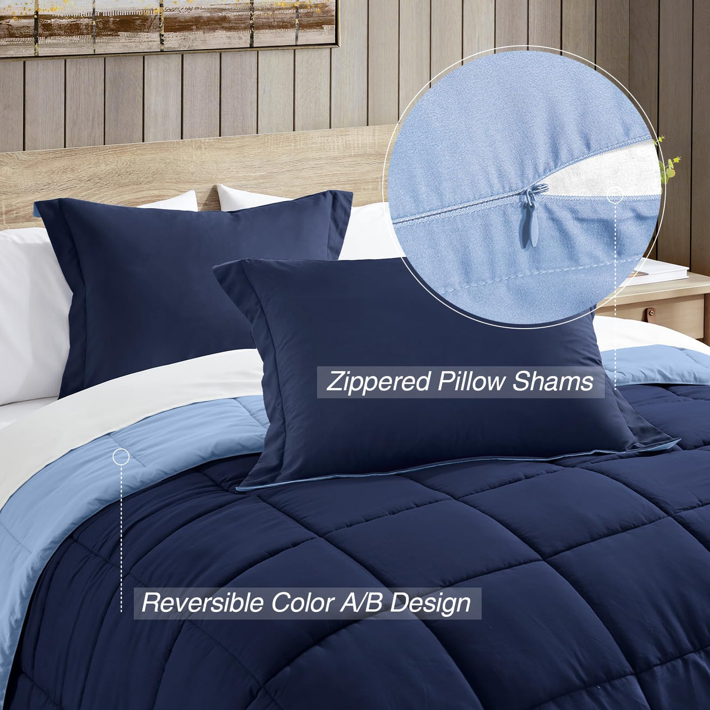 Satisomnia Full Comforter Set Navy Blue, Lightweight Comforters Full Size Bed, Soft Breathable Down Alternative Bed Comforter Se