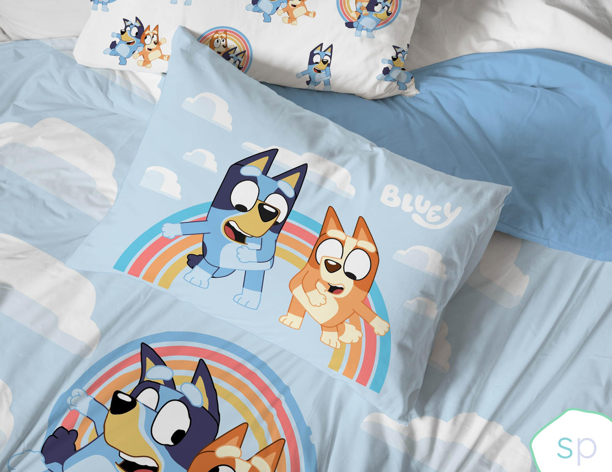 Saturday Park Bluey And Bingo Rainbow Clouds Twin Bed Set - 5 Piece 100% Organic Cotton Bedding With Duvet Cover And Sheets - Go