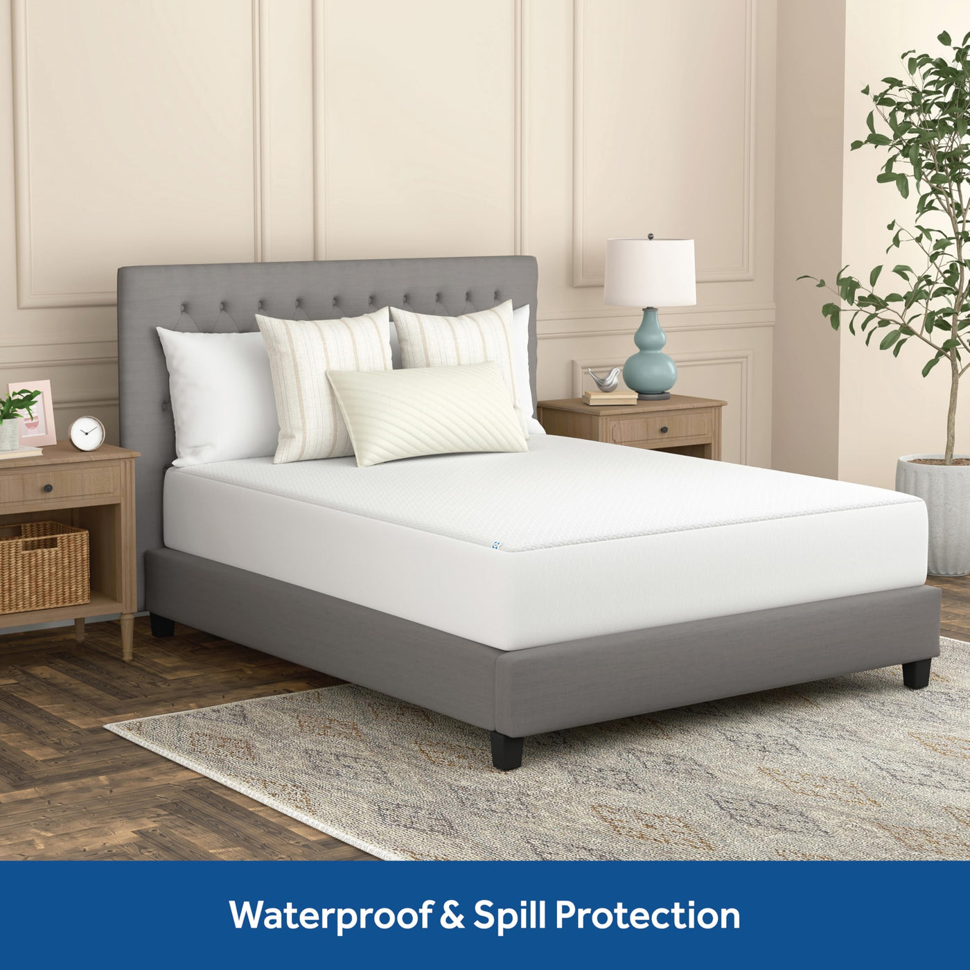 Q: What makes the Sealy Complete Protection Mattress Protector waterproof?A: The Sealy Complete Protection Mattress Protector features a premium waterproof layer that effectively prevents spills and stains from reaching your mattress, ensuring it stays clean and dry.