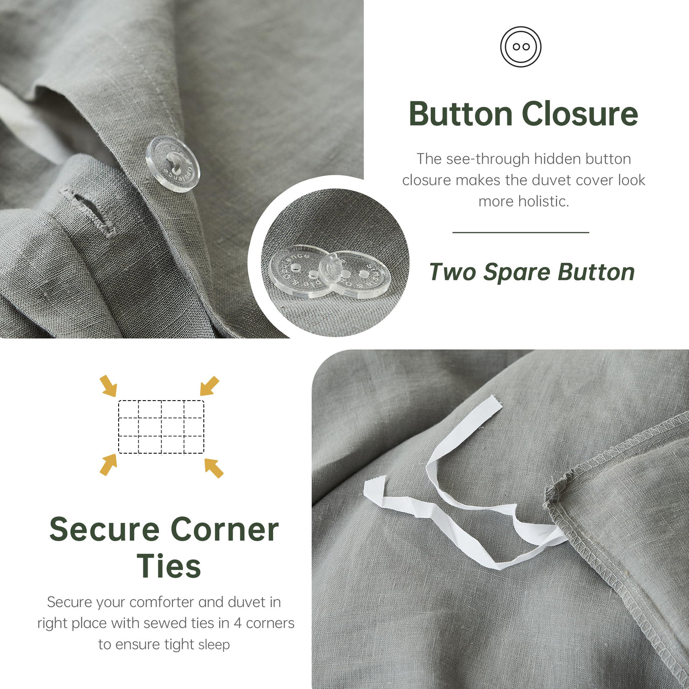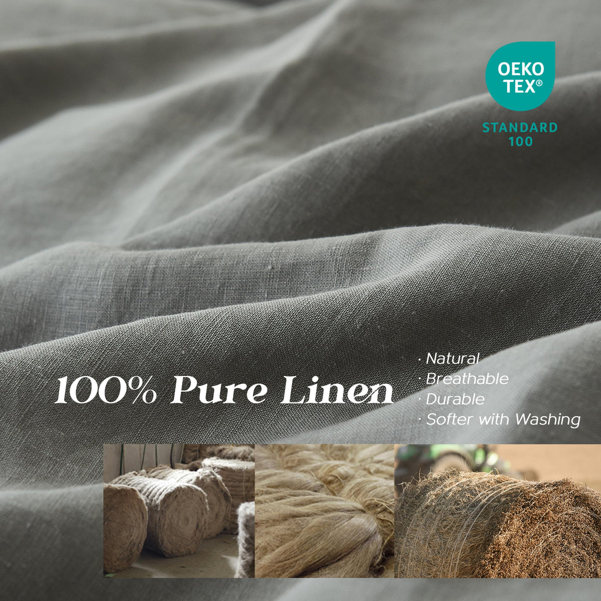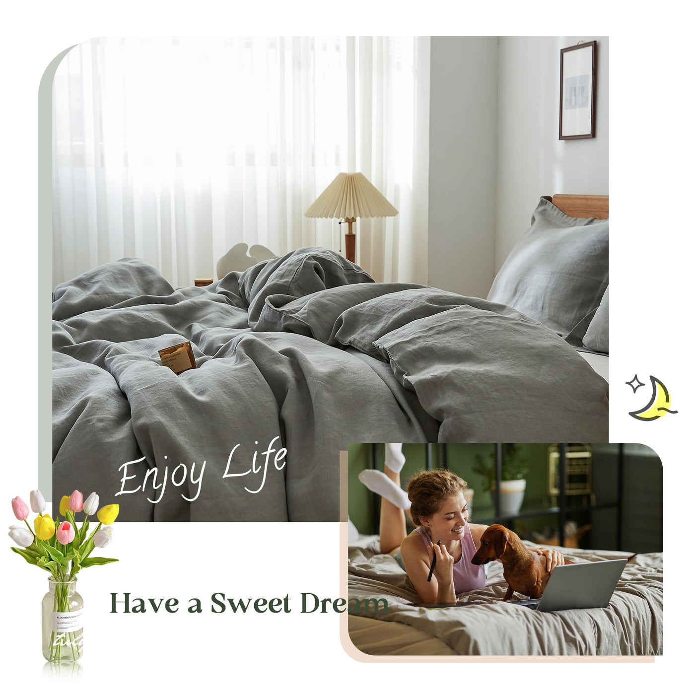 Q: How does the linen fabric benefit my sleep experience?A: The linen fabric used in this duvet cover is breathable and effectively regulates body temperature and humidity, providing a comfortable sleeping experience throughout the year. It is also OEKO-TEX Standard 100 certified, ensuring it is free from harmful substances.