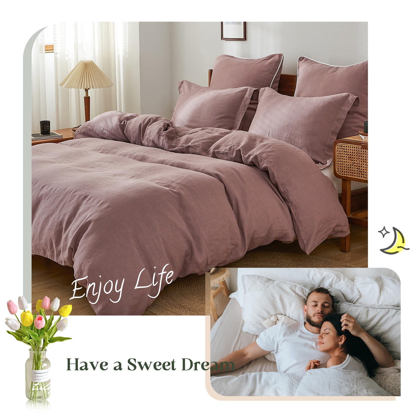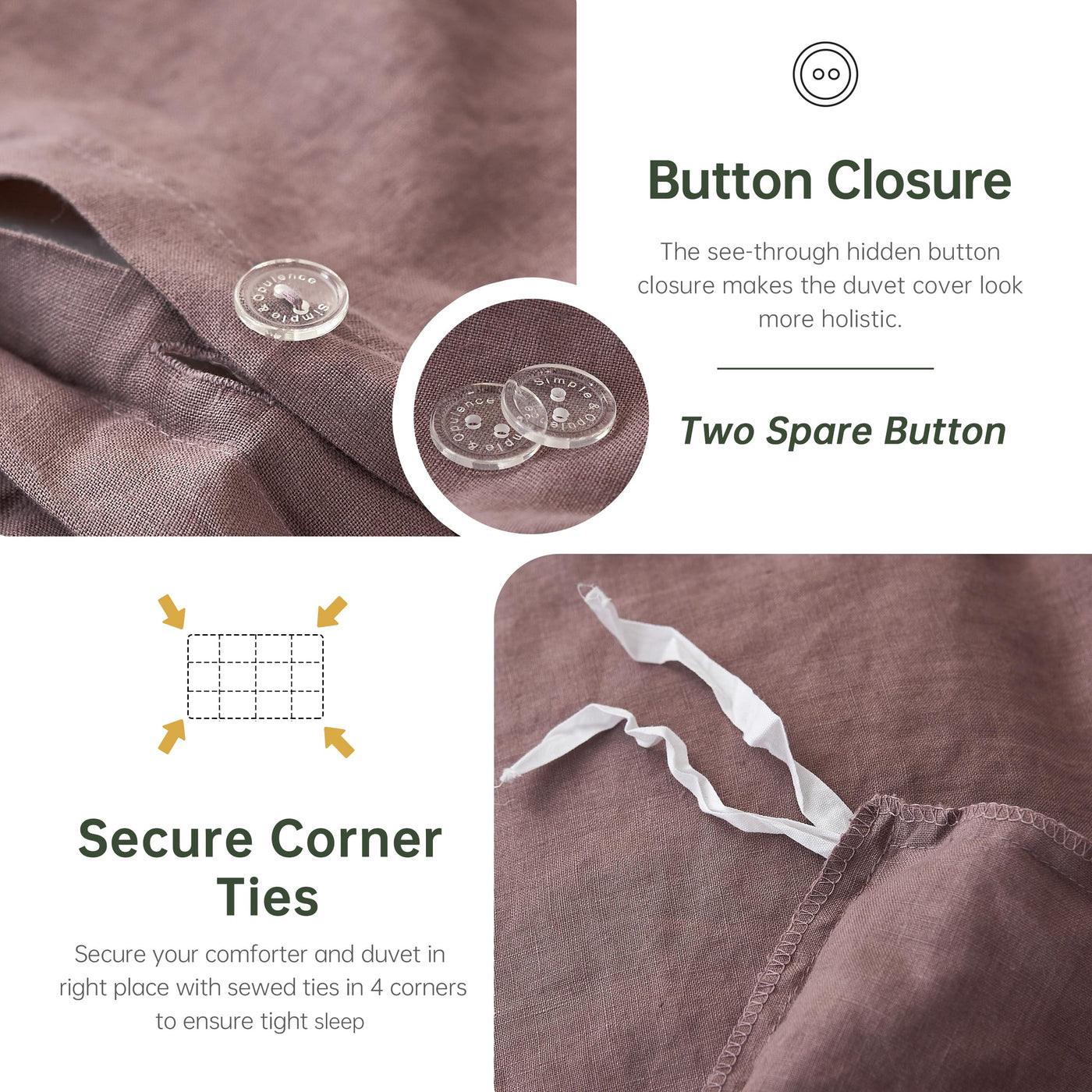 Q: Is the linen duvet cover set easy to care for?A: Yes, the linen duvet cover set is machine washable. It becomes softer with each wash, but it is recommended to keep the buttons closed during washing to prevent tearing.